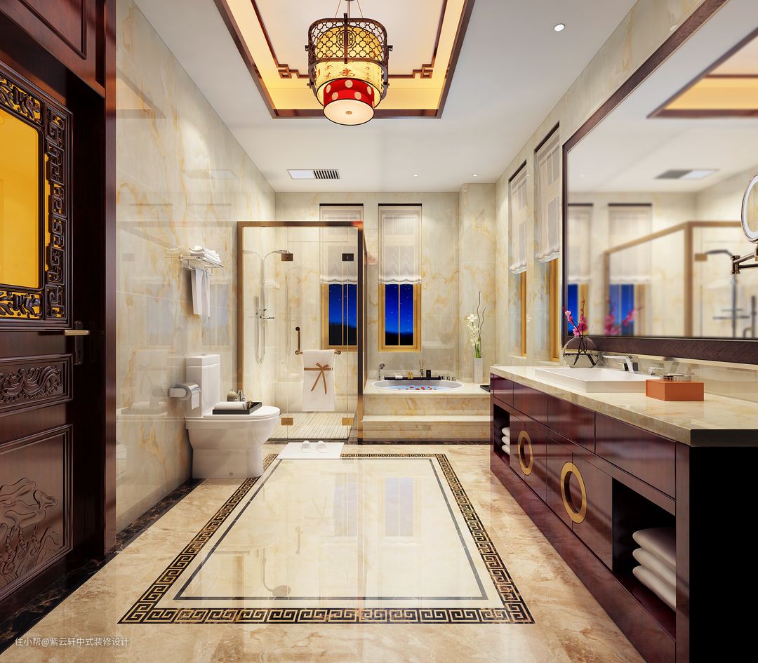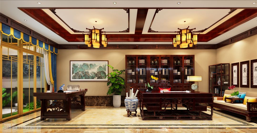 二层次卧中式装修,无论是古朴素雅的中式古典家具,还是流光柔婉的时尚古灯,纱窗帘幔,亦或是恬淡灵秀的陶瓷台灯,完美的艺术设计,营造出了一种别致的优雅之境。