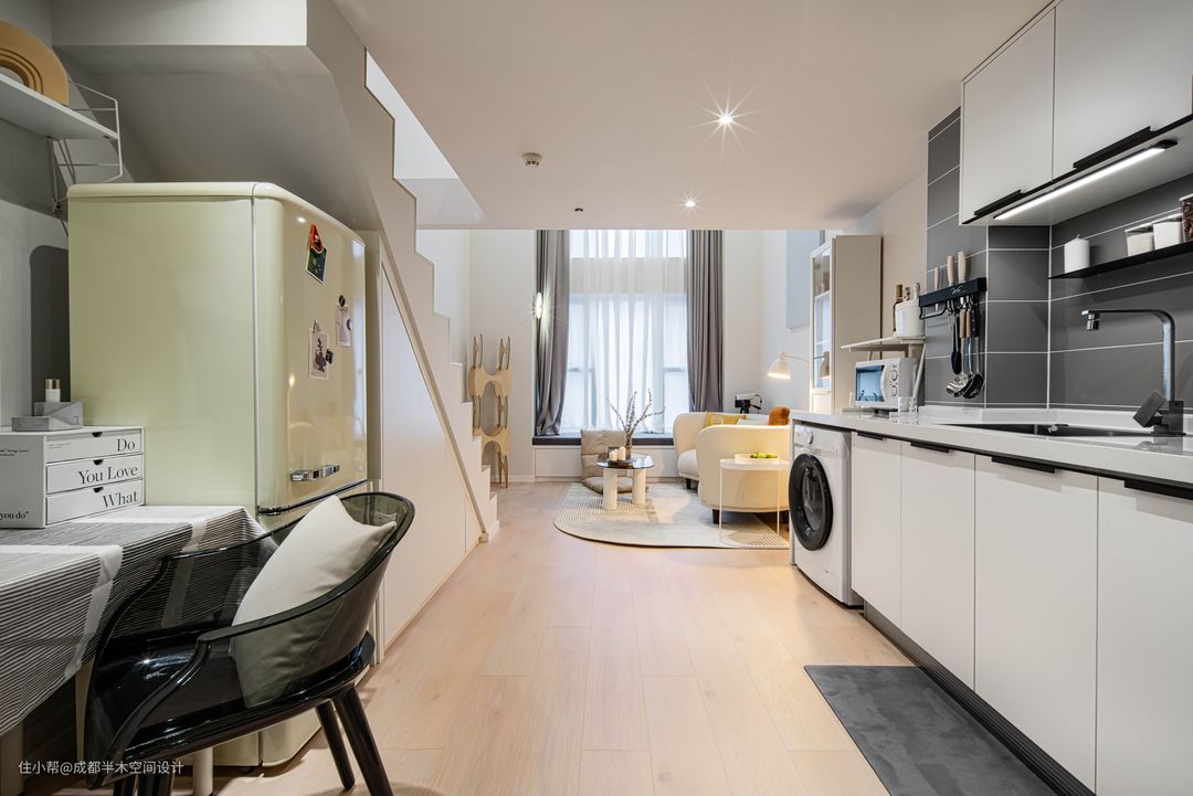 流动性、复式结构、开放性是loft公寓设计的三大特征。虽然空间不大,但通过巧妙的设计,不仅能打造出简约、有层次感的室内空间,还同时具有舒适性和时尚感。 项目位于成都市乐活公社,本次设计是为一位设计师妹子打造一间舒适自由的独居空间,所以设计重点更多的放在利用好每1㎡设计一种轻松自在的生活方式。