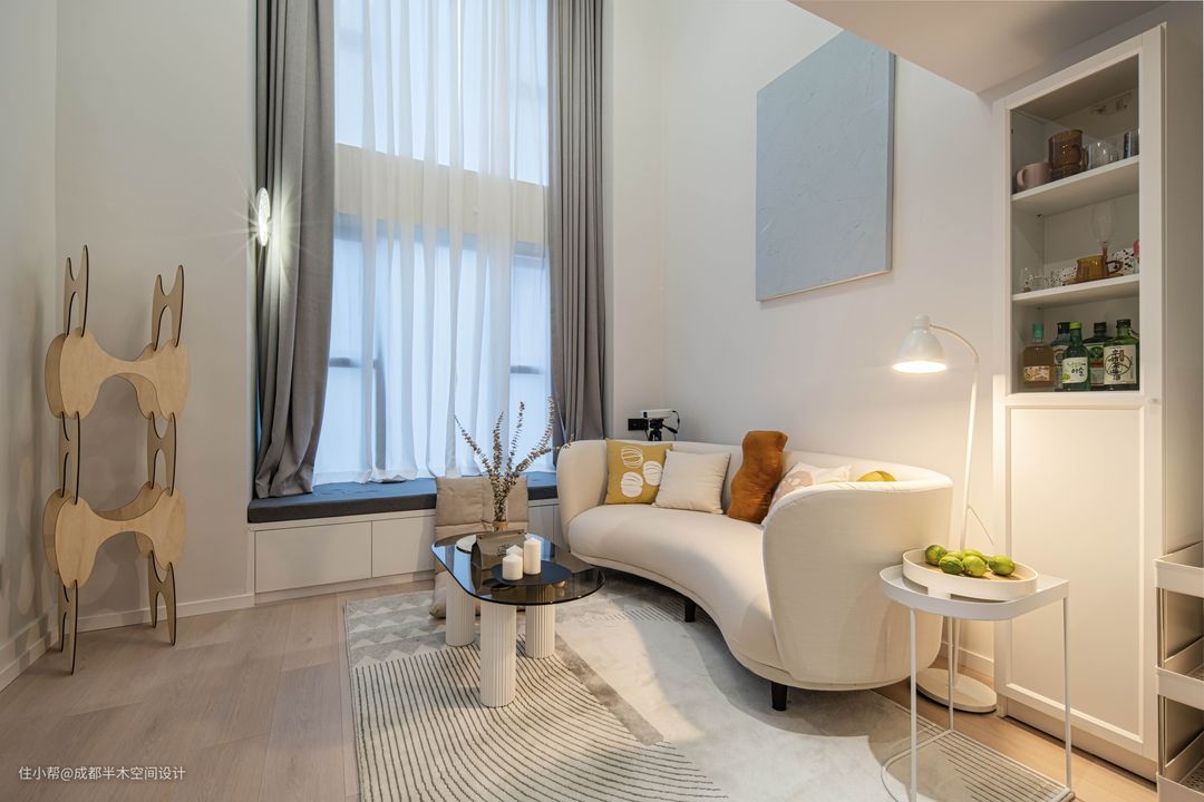 我们在靠窗的客厅区域保留原始的挑高空间,增加了客厅的日照体验,带来了良好的采光,整体设计以浅色为基底,干净通透,搭配精致小巧的家具,让小空间在满足功能性需求的同时,拥有时髦的设计品位。