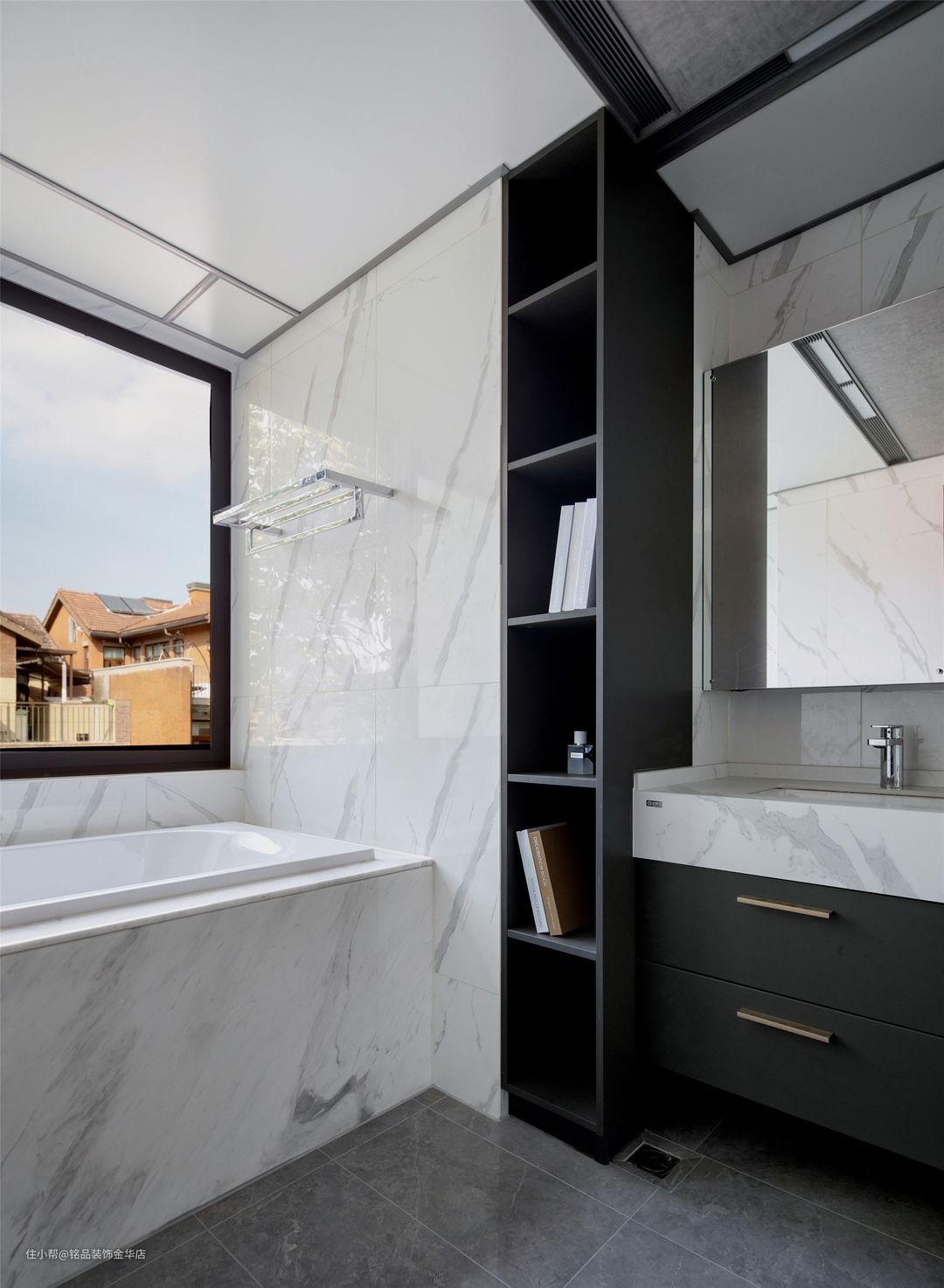 浴缸边上的壁龛设计可以说真的是加分不少,放小物件也是很不错哦。