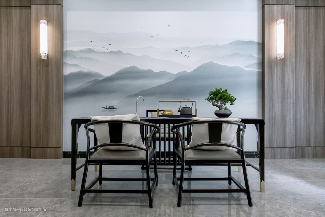 现代新中式工作室设计,前面说到屋主喜爱文学,没事也爱练练字。所以我们将办公和休憩结合在一起,工作劳累之余练练毛笔舒缓身心还是很不错的哦!