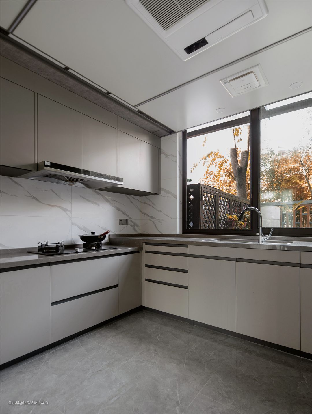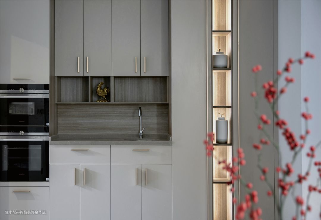 厨房主要设计路线以U型动线为主,高低柜和装饰柜的布置,确保了厨房的收纳性和美观性。