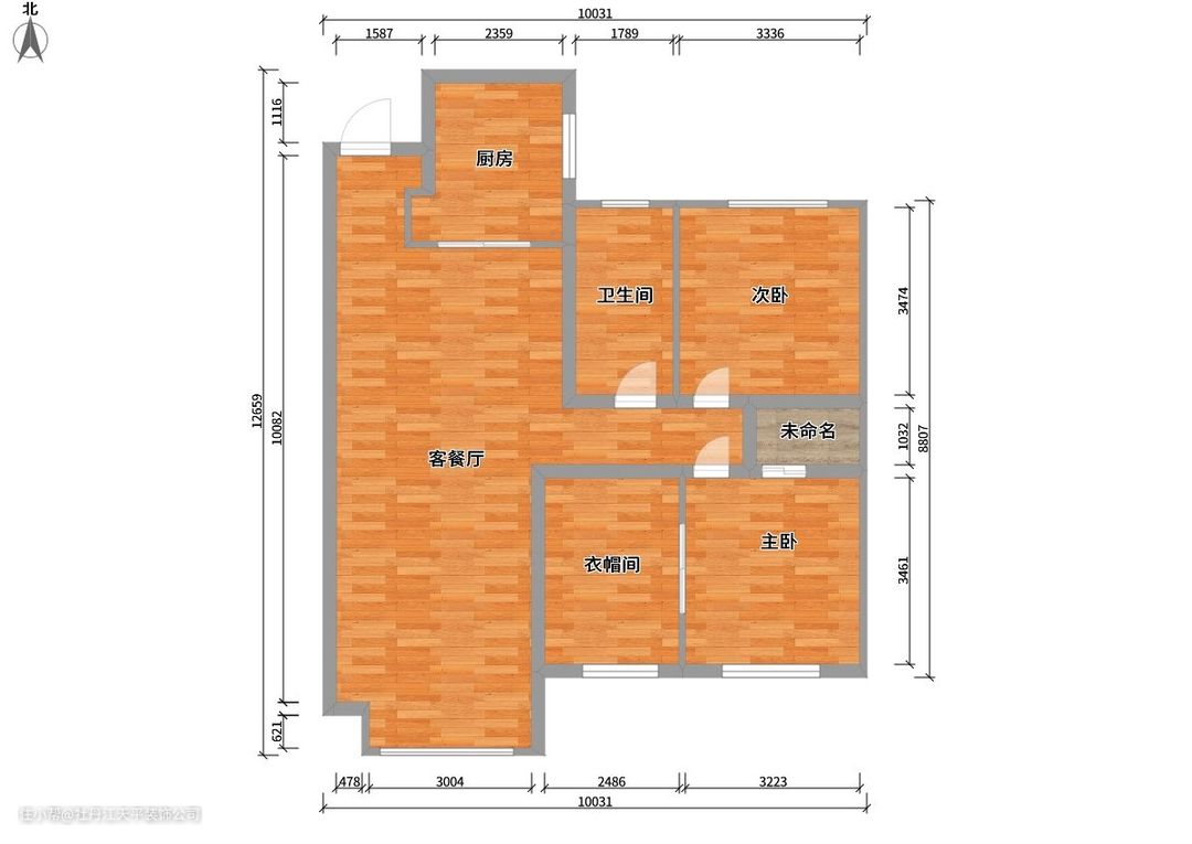 本户型为两室一厅一厨一卫,主卧的房间面积非常大,可以改出来一个卫生间,与主卧链接的屋子,可以做书房或者衣帽间。