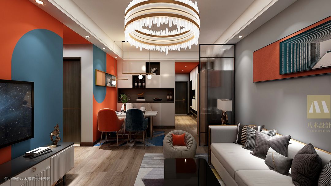 1.对于本案我认为最大的亮点是色彩的搭配性,大胆配色,创新用材。 2.很多人喜欢轻奢但是碍于造价比较贵退却,我认为材料所堆出来的风格以及所谓的设计感是低级的,我认为用有限的造价及材料做出无限的设计才是最好的。
