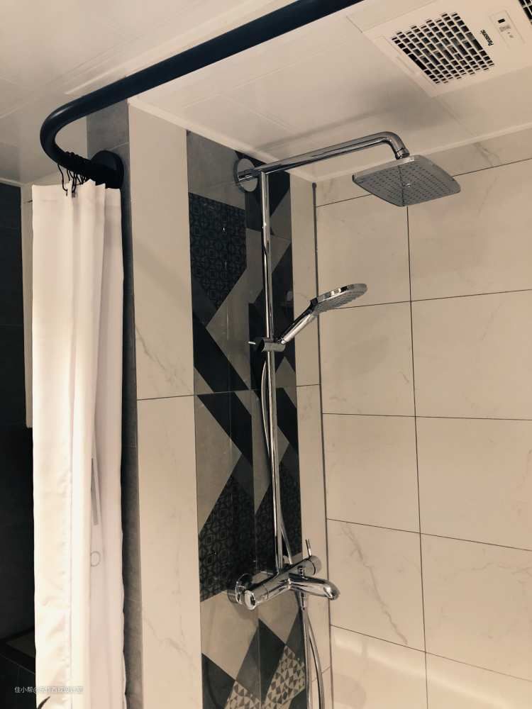 卫生间的空间扩大后把洗衣机做了个区分,淋浴区也够大,之所以没有弄淋浴房是想将来孩子洗澡方便些。瓷砖延续了厨房的搭配,也是灰白配,淋浴间分出了明显的区域感。 集成吊顶的灯光比较糟糕,所以选了geled的防水射灯。