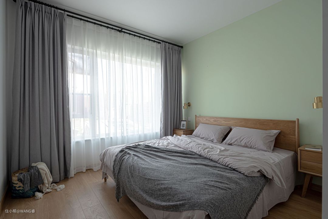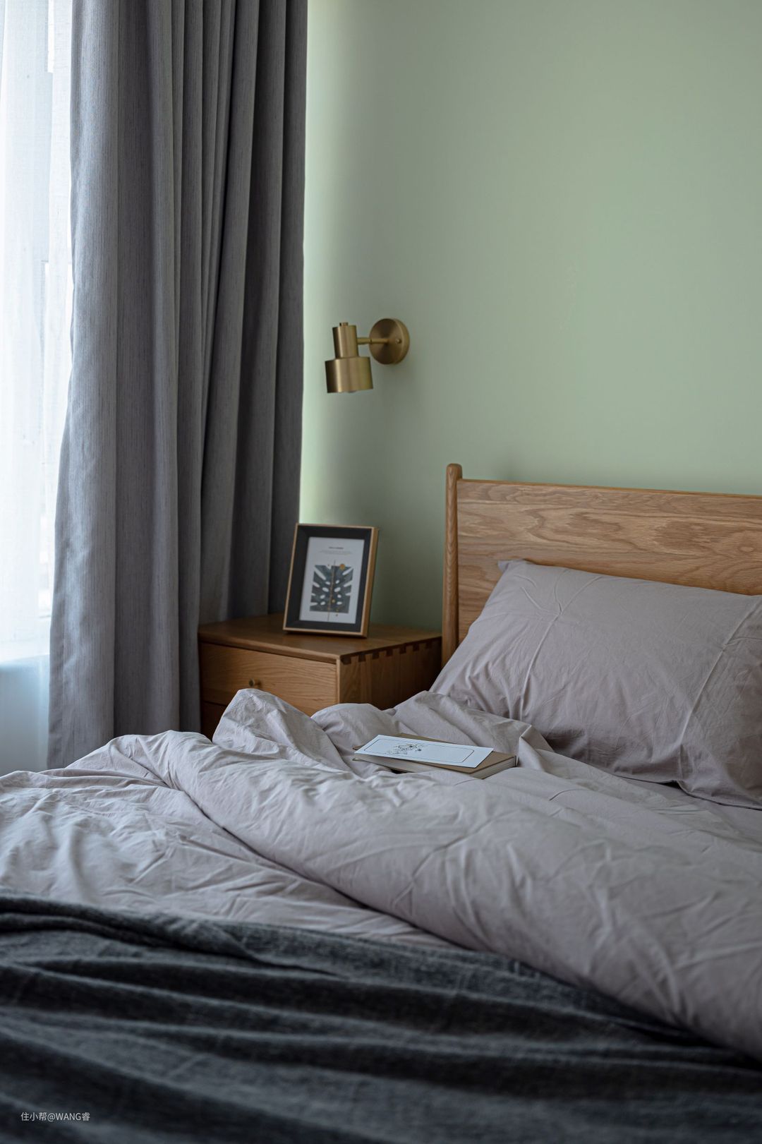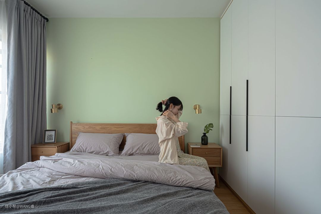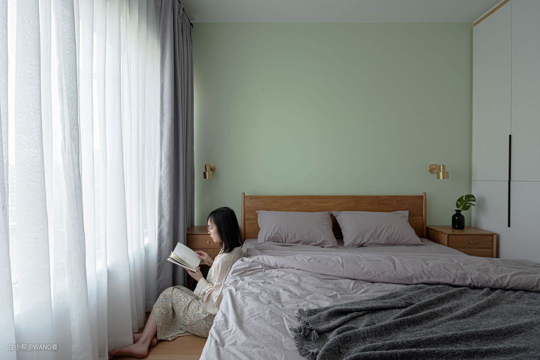 将原有床头的窗户封起来.统一做成背景.增加围合度的同时,也让空间显得更加大气.