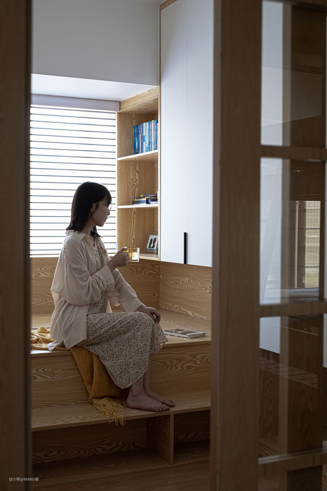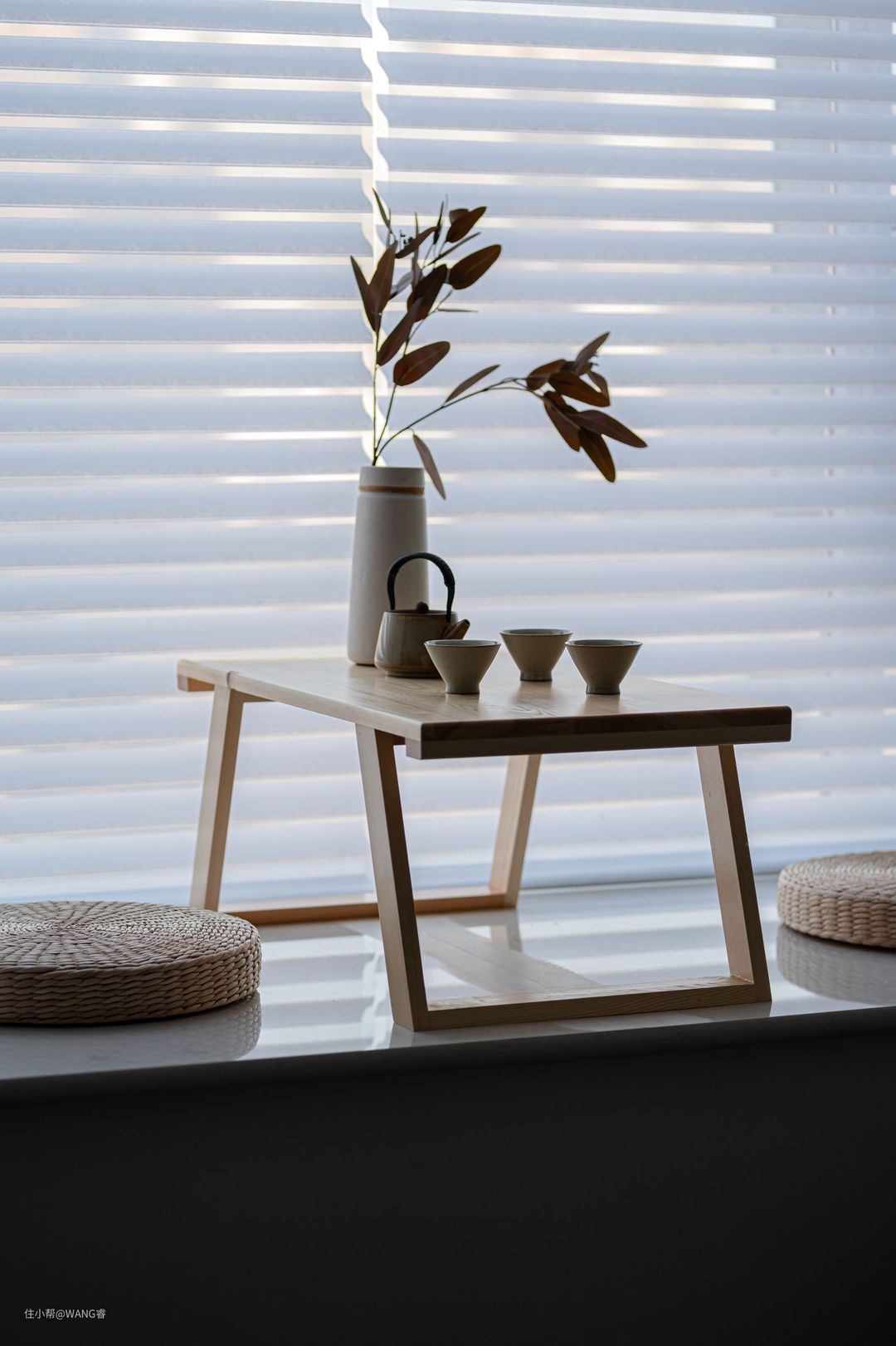 为了不局限飘窗的功能.茶桌选择的可折叠样式.方便根据需求随时拿走进行收纳.