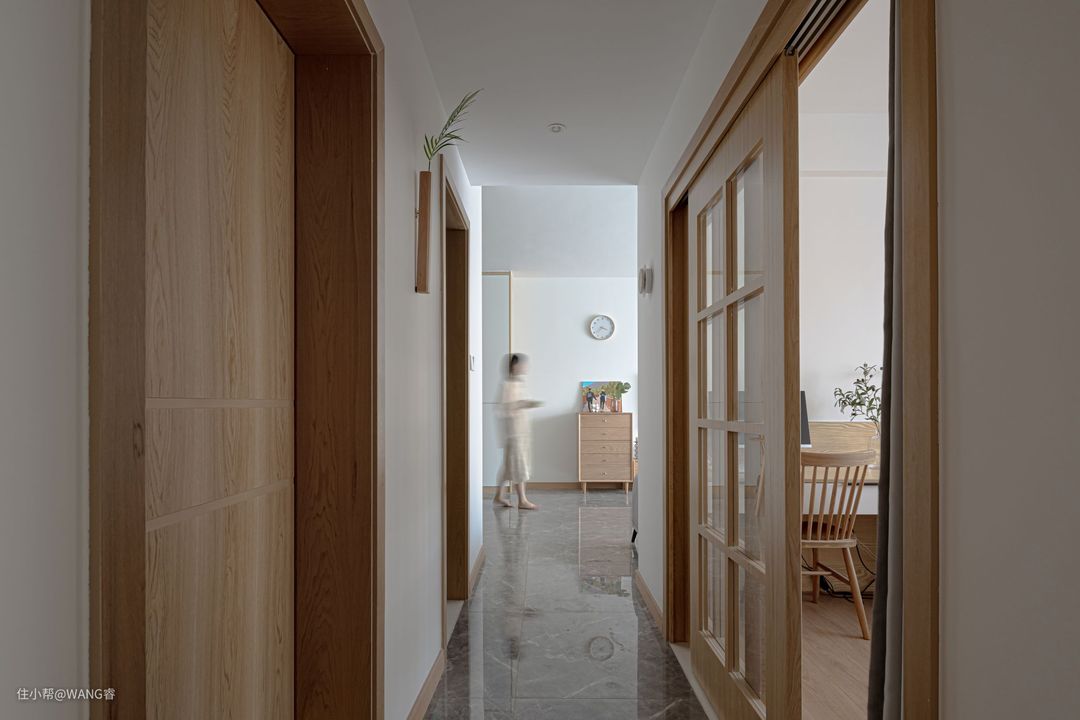 过道原有的墙改为推拉门,在新建的两边墙上设置了小夜灯.其形状是可以自我DIY.不同的样子就如月食的变化.