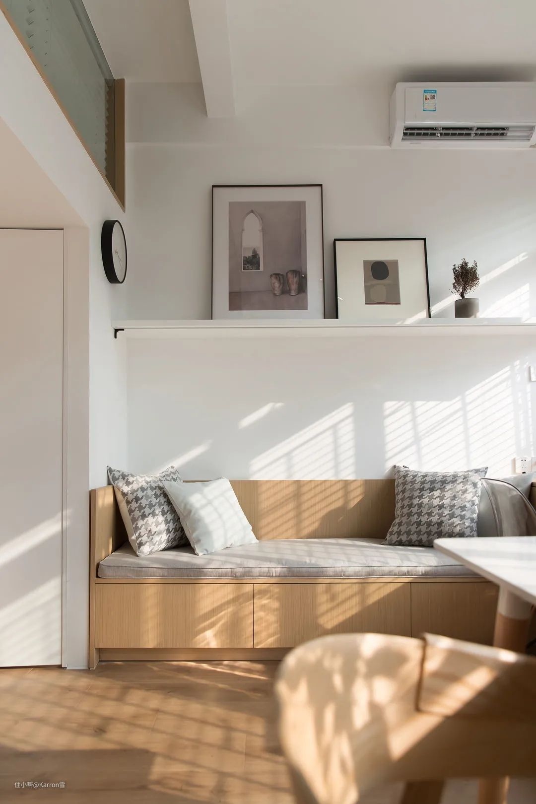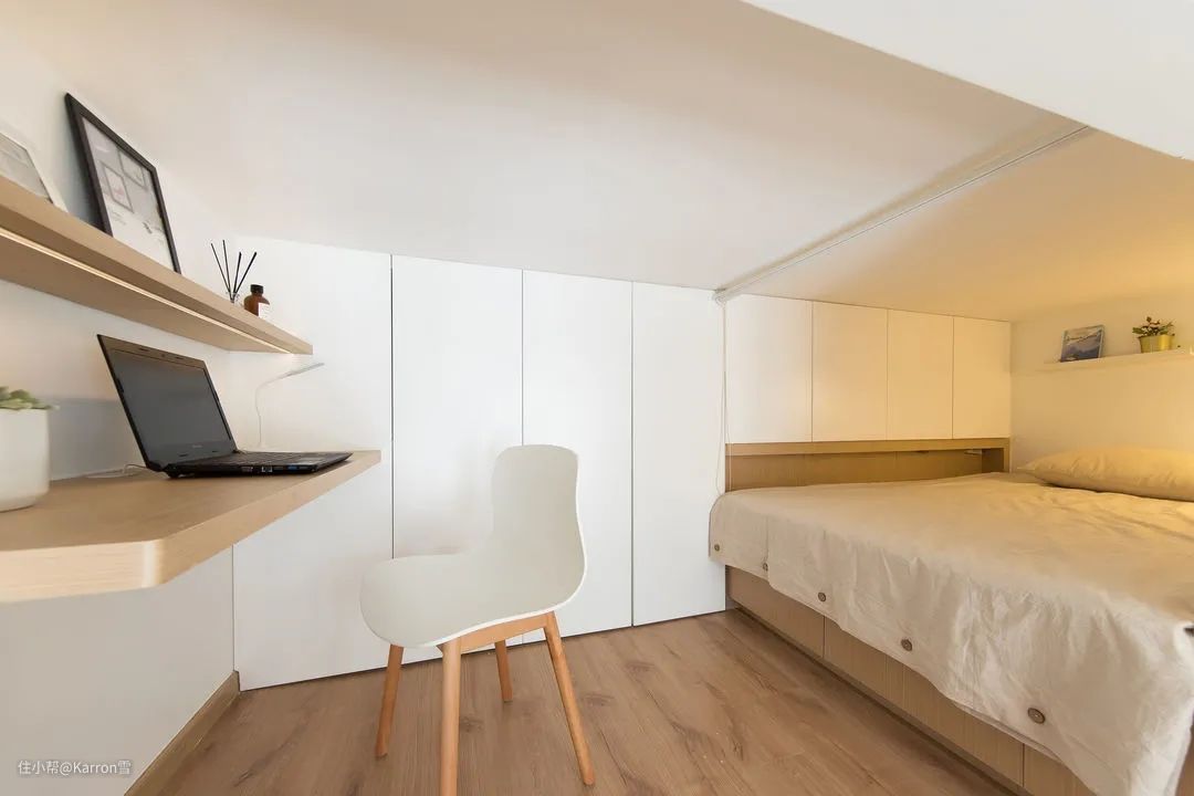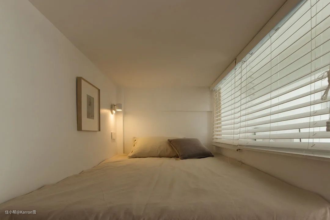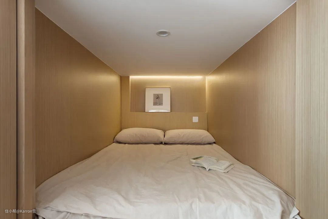 这个空间是君君姨妈的卧榻,设计的台面可以随意放日常物品。