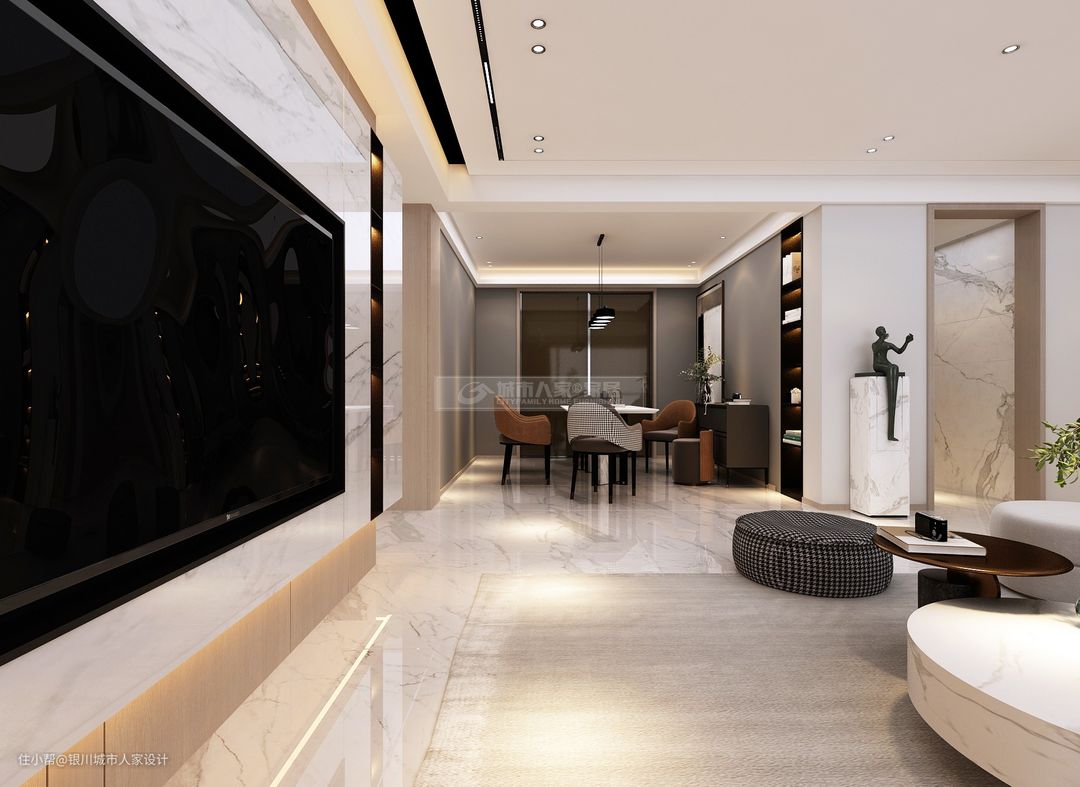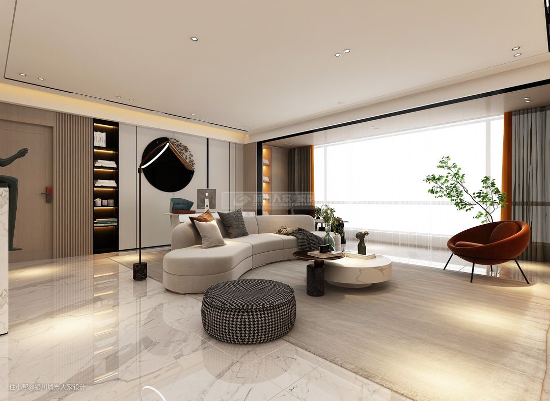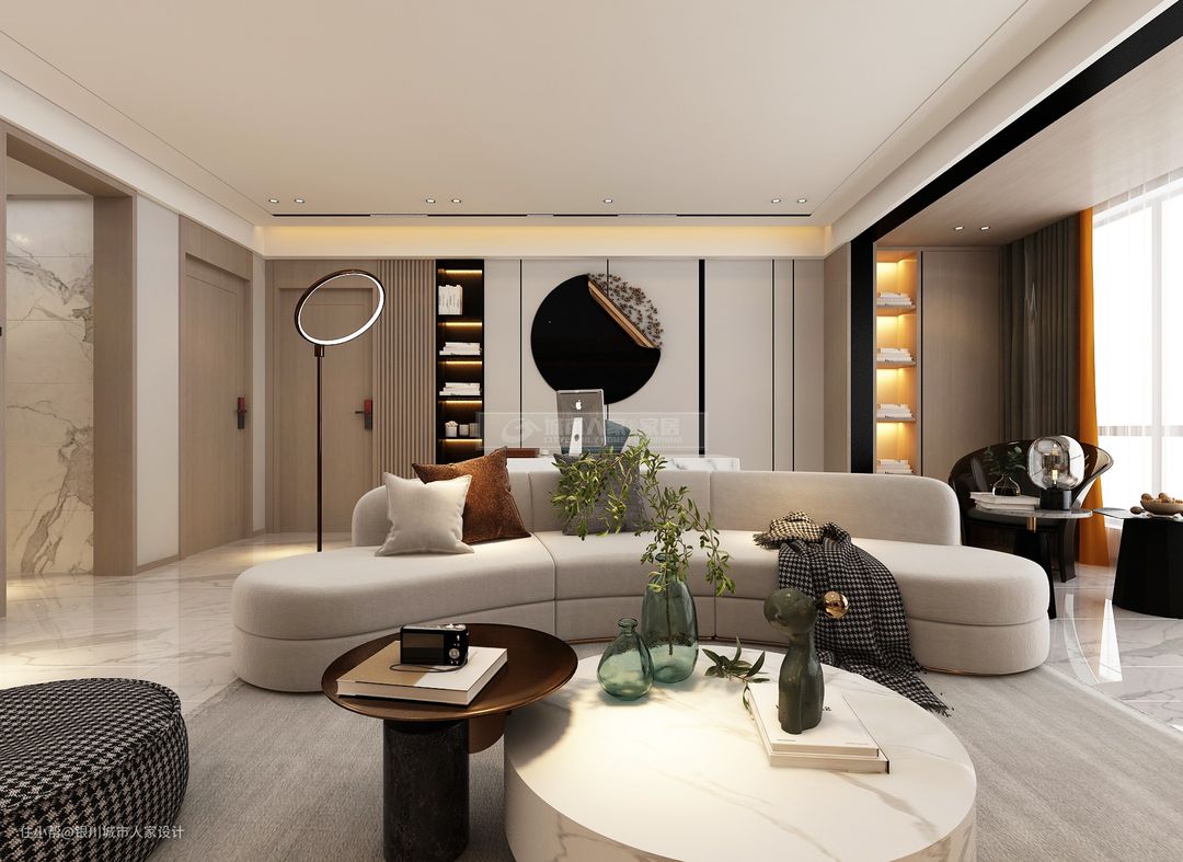 棕色的休闲椅柔软舒适,从沙发到茶几,再到整个墙面的布置,无一不体现现代轻奢的质感生活体验。