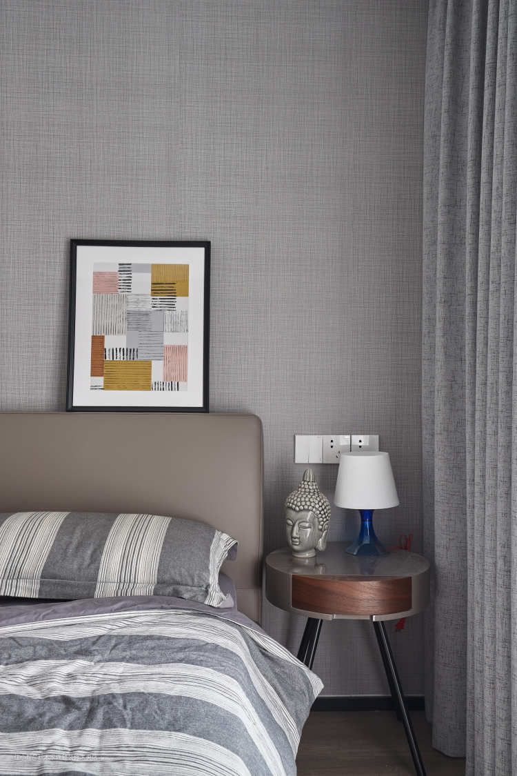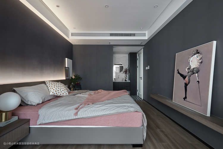烟粉色圆点装饰画是设计师精心为本案设计并亲手绘制,希望用一些独特的“语言”来表达空间美学和质感。