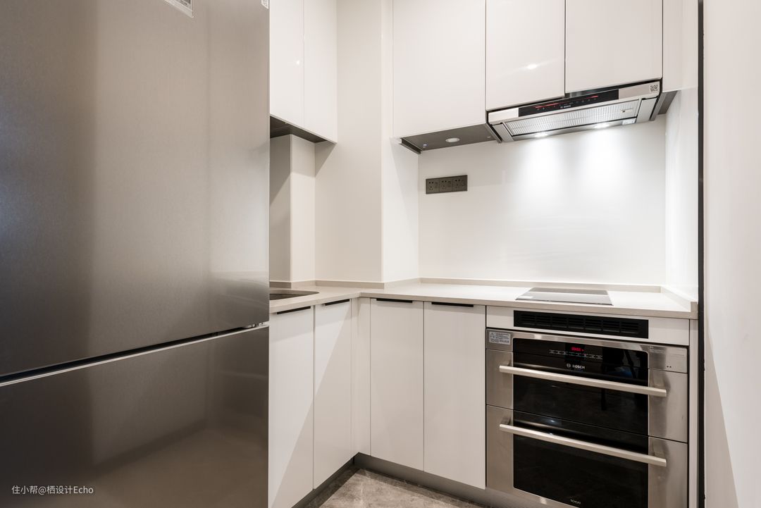 精装修的厨房,没有做改动,由于还没有入住,显得比较空。