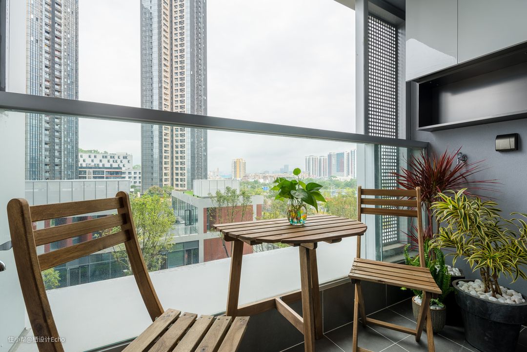 宜家的这组户外桌椅非常适合小阳台,半圆桌面,可以可以折叠收起来,阳台植物是在本地花市采购的。