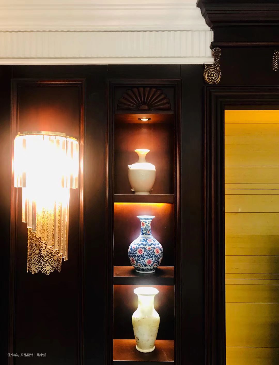 业主的众多收藏品,放进设计好的壁龛里,彰显品位,一点也不违和。