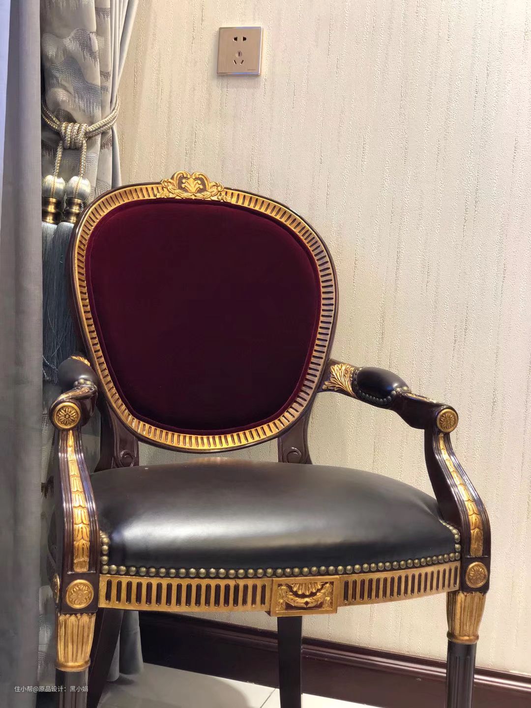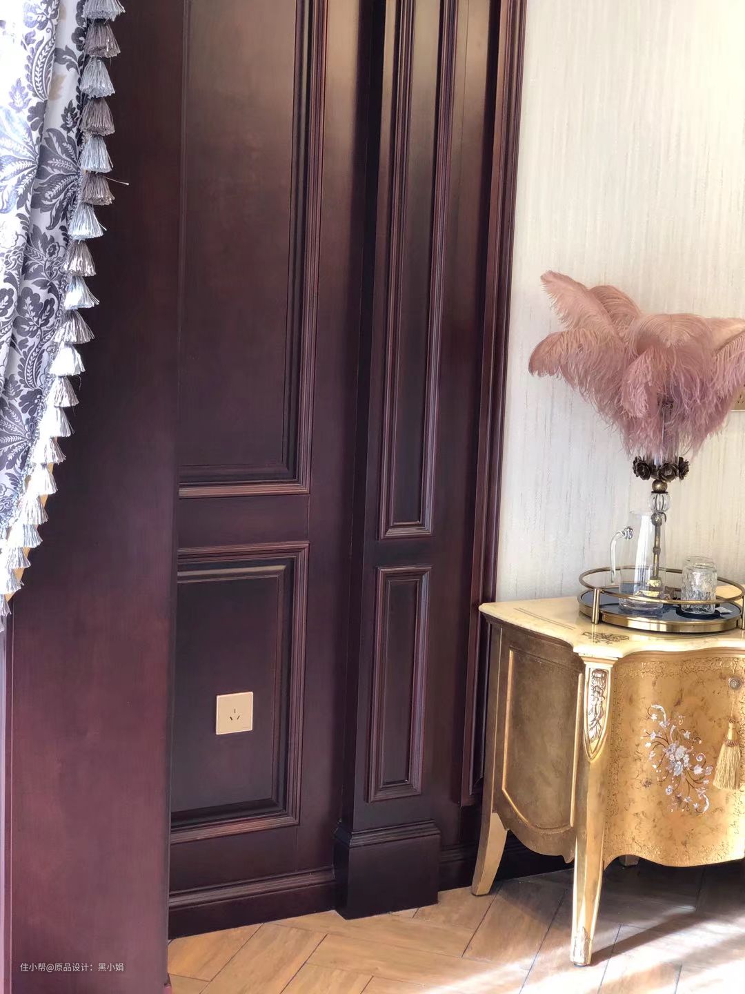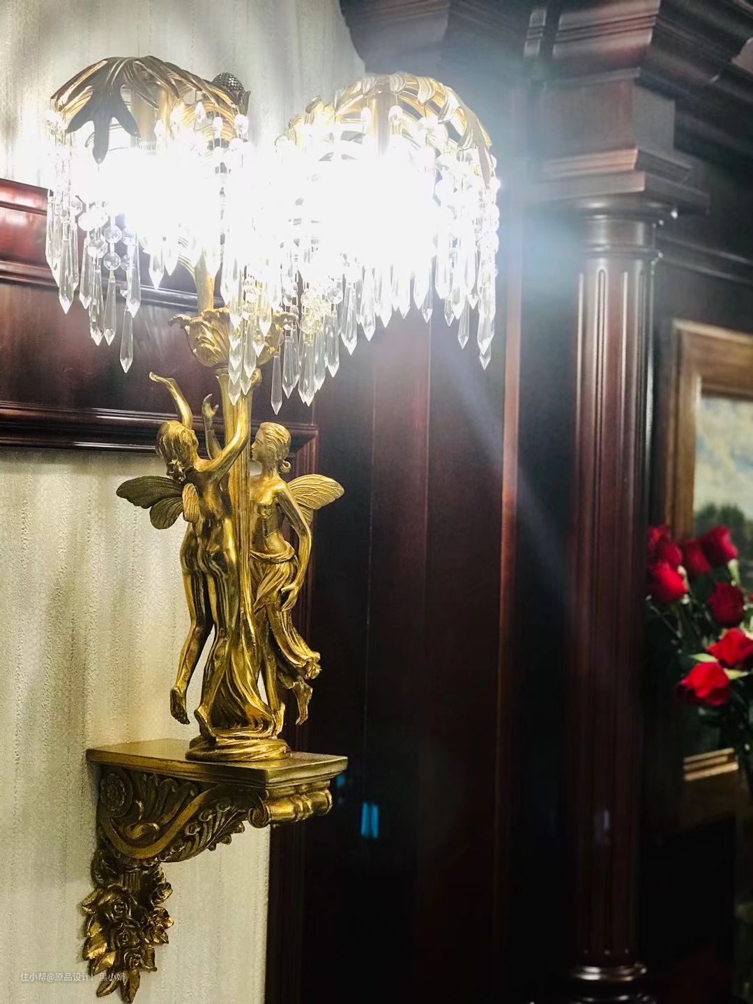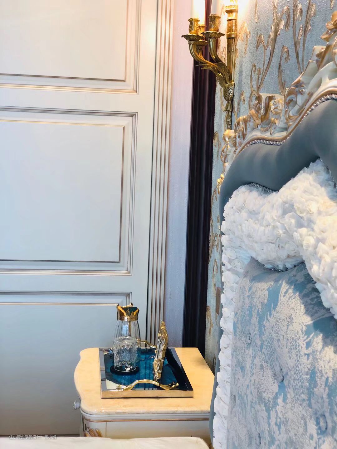 墙纸,真丝拉扣古典床,墙板,衣柜,纯铜壁灯,完美融合!