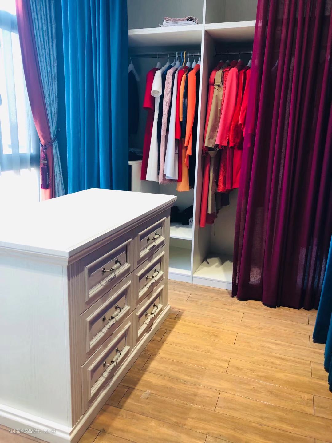 衣帽间,女人的最爱。 做设计这么多年,这是我做过最有利用价值的衣帽间。 详见最后一张。
