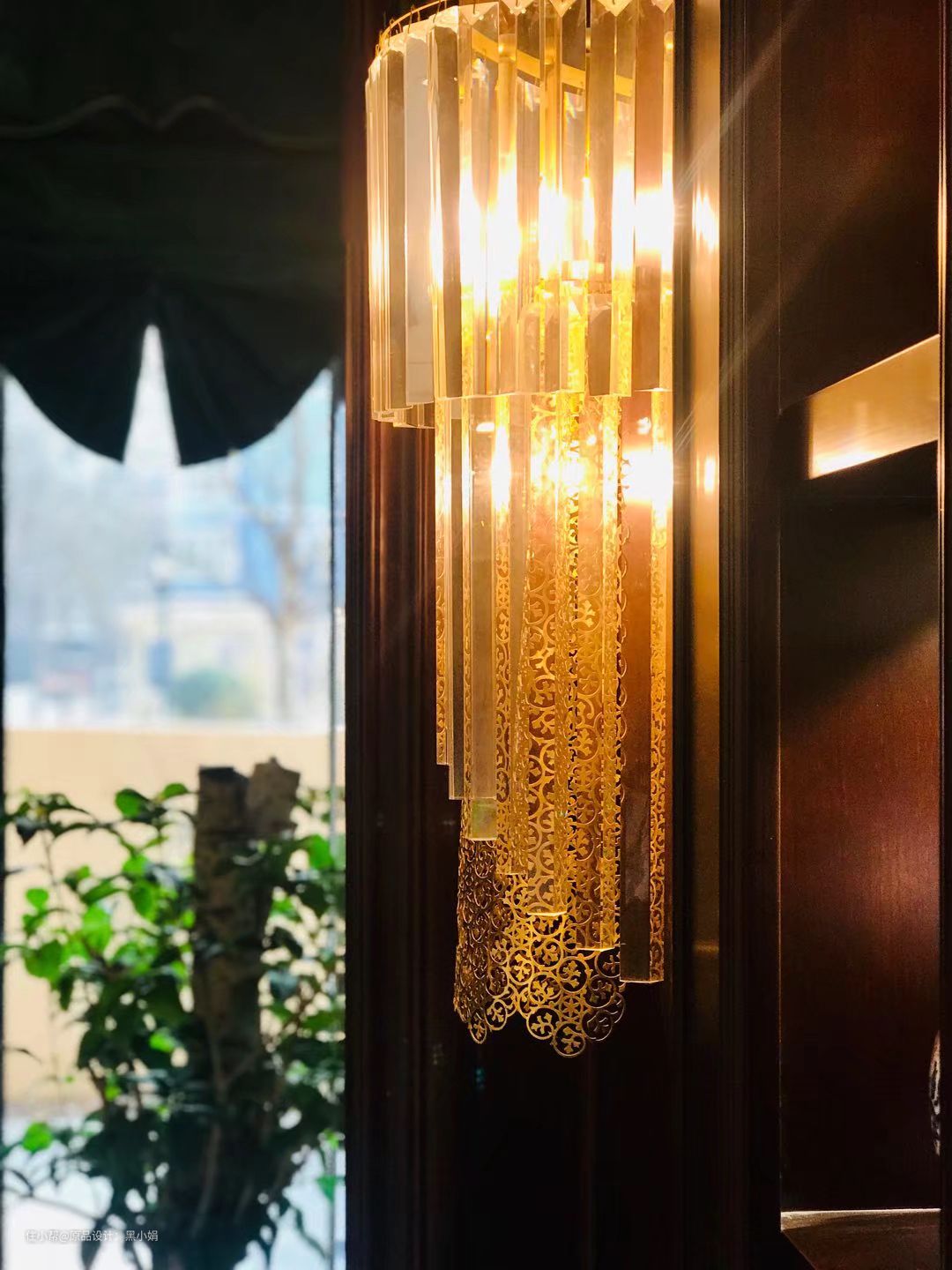 这块面料,和餐厅的灯饰融合的太完美。面料本身非常高级,丝绒+刺绣,符合业主气质。