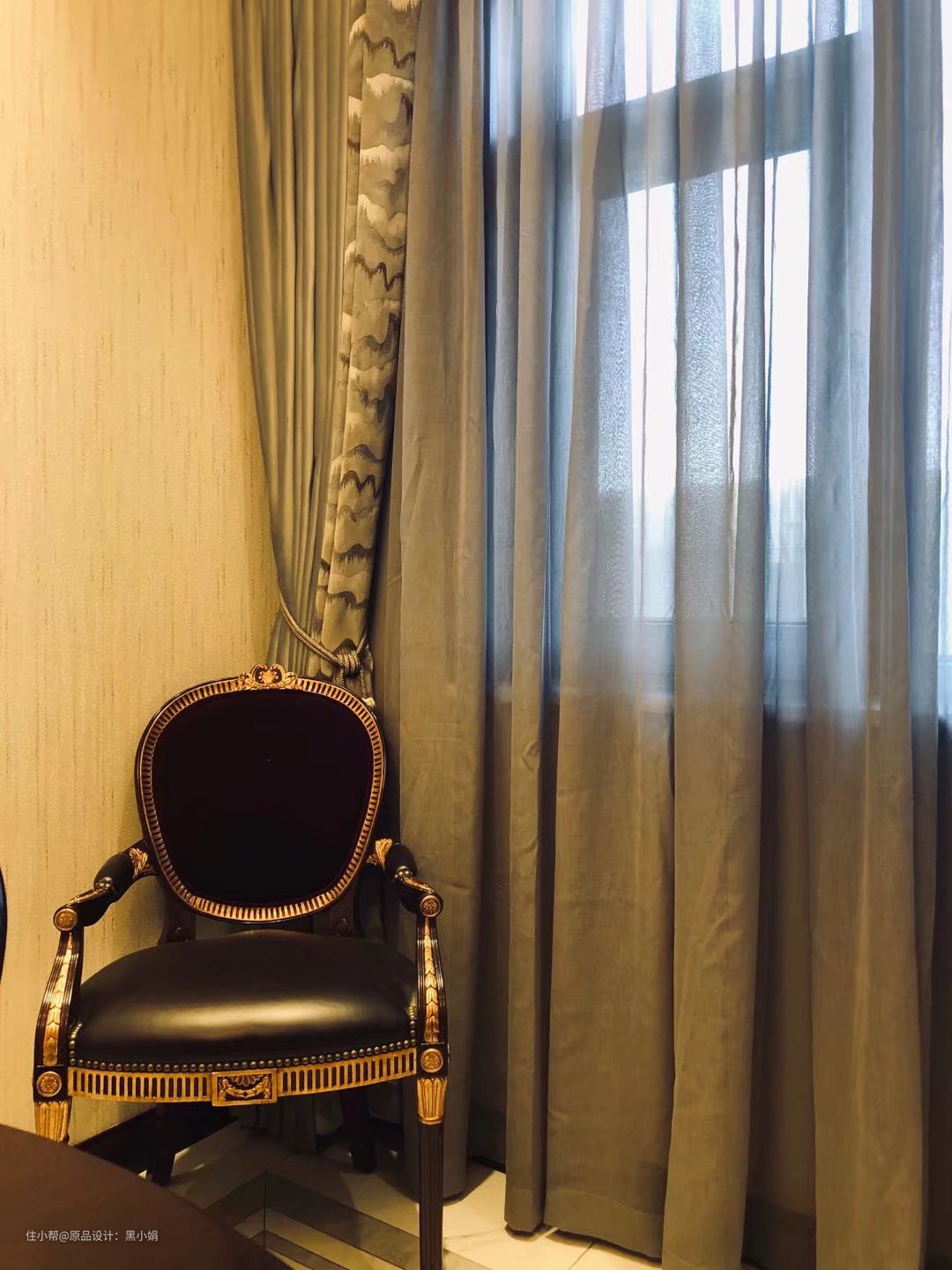 这块面料,和餐厅的灯饰融合的太完美。面料本身非常高级,丝绒+刺绣,符合业主气质。