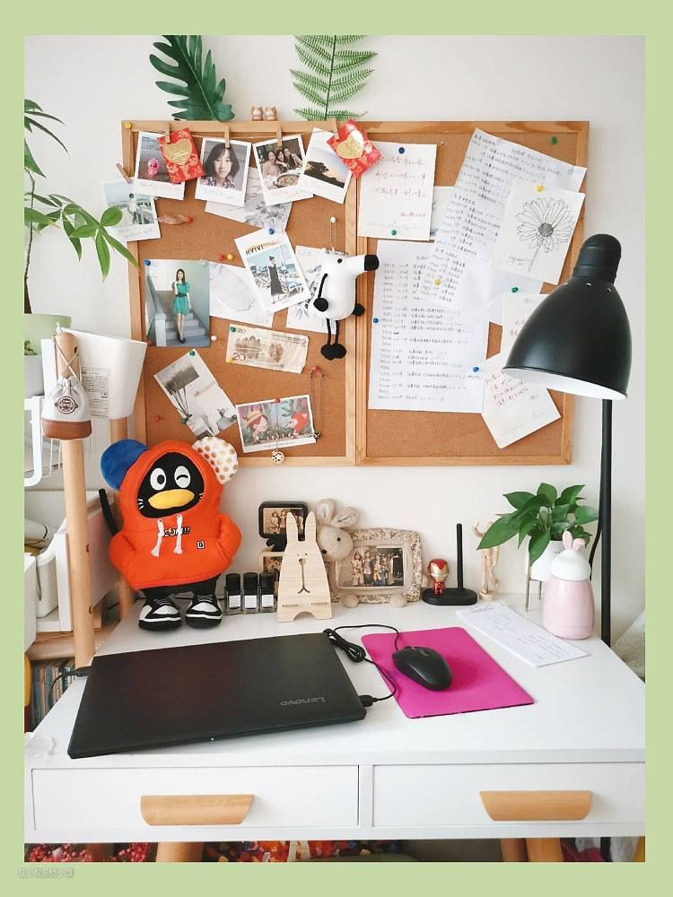 书桌上方挂了2块软木板,很好用,照片、图卡之类的都可以往上钉。(刘看山生无可恋的样子O(∩_∩)O~)