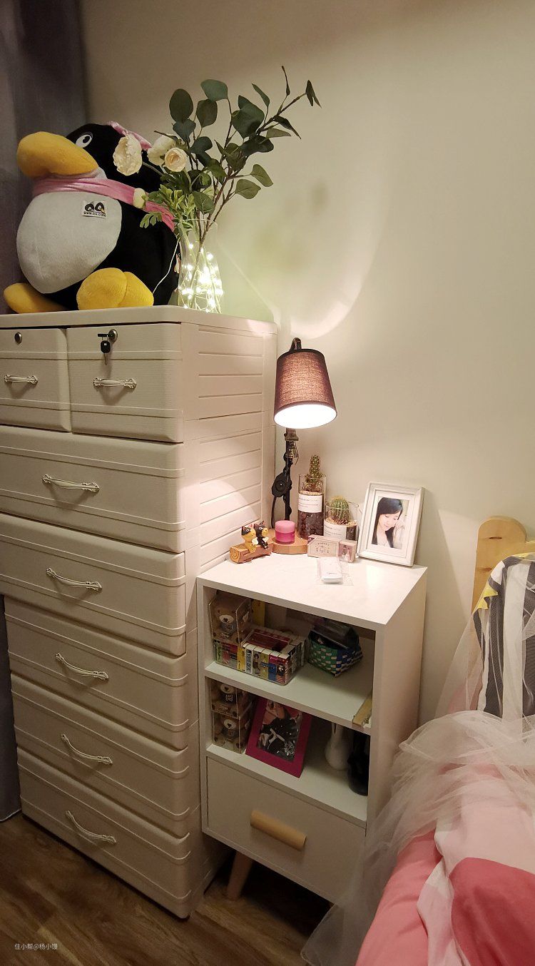 卧室的床头柜其实和客厅的电视柜是一套的,被我分开放到这里单独使用,哈哈感觉自己很机智的样纸。