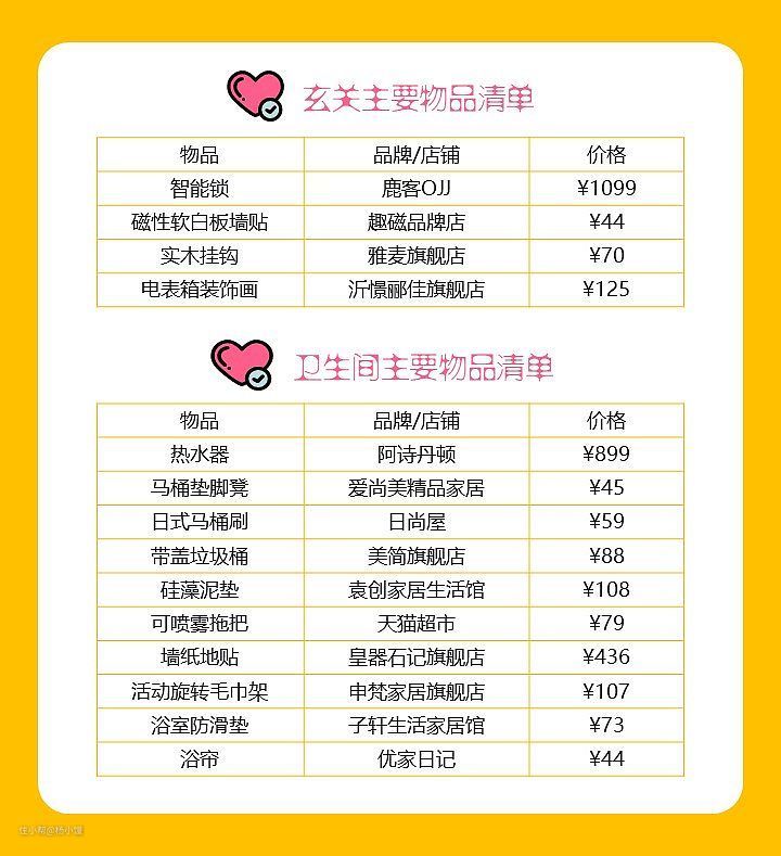 前面说了我家95%以上的物品都是网购的,用了一年目前为止基本上都满意。我把主要的物品整理了个清单,供大家参考。大件小件都很全了,零零种种把一个屋子从0装满,我花了不到3万元。