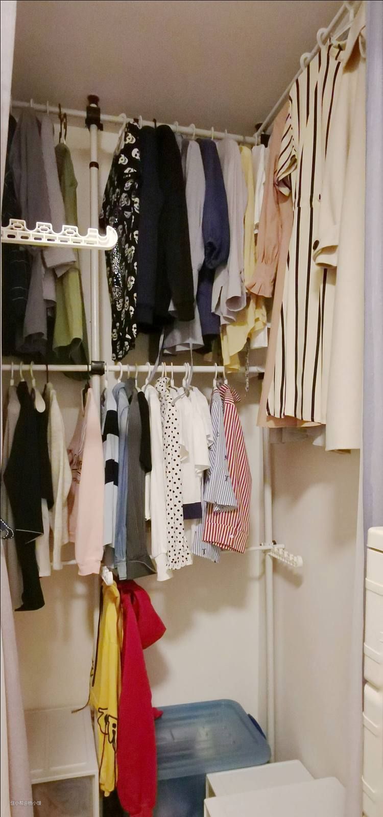 我在两组杆之间的右侧还自己加了一根细杆,可以用来挂长裙一类特别长的衣服。