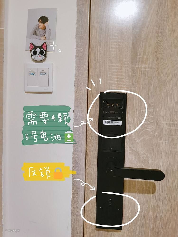 这是屋内侧的样子,智能锁需要4粒5号电池,不过挺耐用的,我大概半年换一次电池。