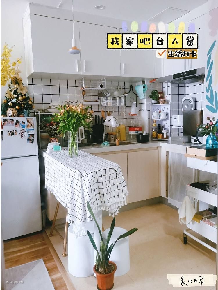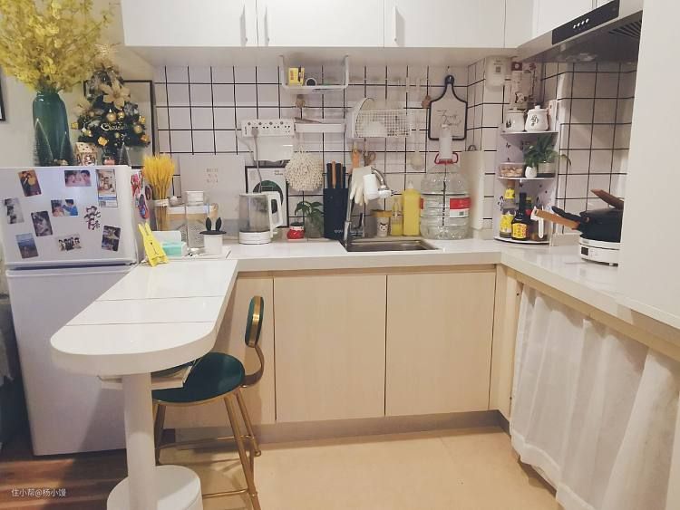 随着入住时间的推移,物件慢慢增加,小吧台也已经“穿”上了“衣服”,锅碗瓢盆的日子让我心里很踏实,小厨房也越来越有烟火气啦!