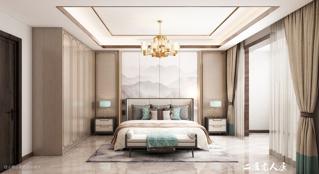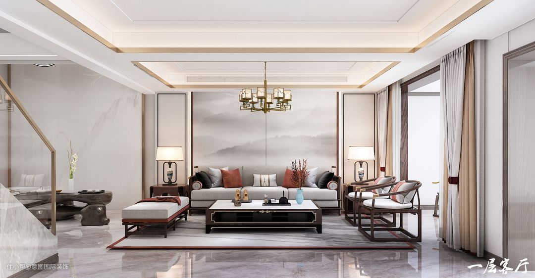 传统中式风格的家具或软装饰品色调都较深,在设计初期需要对房子的整体色调进行设计,新中风格色调一般以棕色调为主色调,但是也不能全房使用这种色调,给人的感觉会很压抑,所以新中式风格加入现代风格的色调进行融合。新中式风格造型以简洁明朗的造型为主,以简洁的线条勾画出空间层次感,再配上具有古典气质的家具及现代风格的简洁,极大的满足了现代人追求的时尚感和实用的原则。新中式风格后期的软装搭配非常重要,家具及软装饰口的搭配都是比较注重体现古典风格的基调,例如中式风格家具中的太师椅、有雕刻的家居装饰口以及全房的灯具都可以加入新中式风的设计特点。