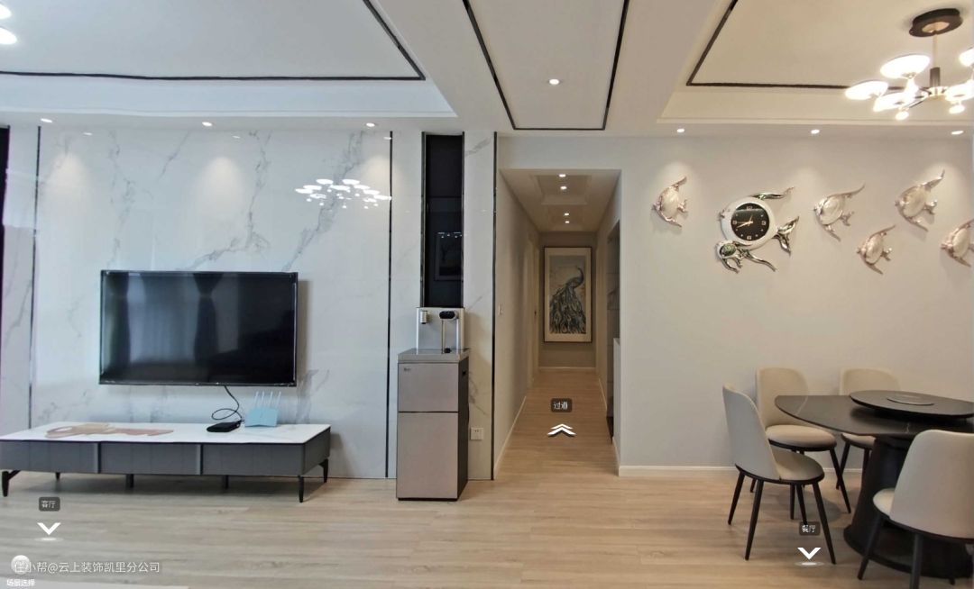 ▲走廊另一边是一幅孔雀散屏挂画,高级美观,这样进入走廊时就不会感觉太单调了。