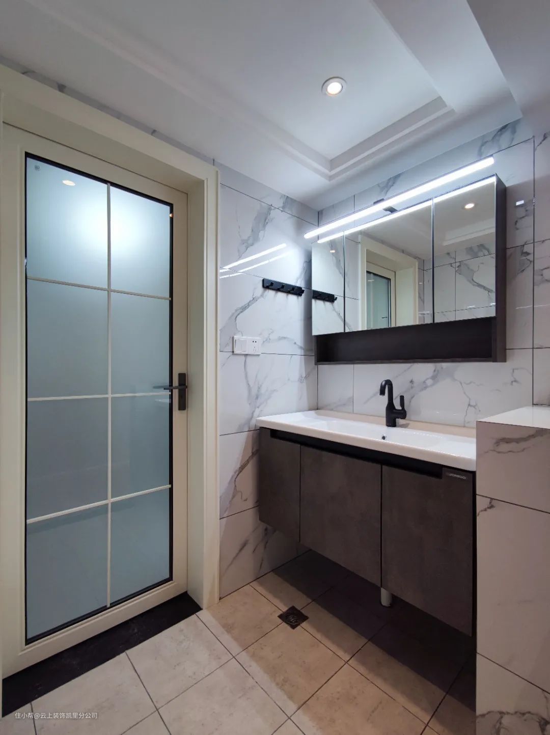 ▲这里是通往卫生间的走廊的视野,多选用黑色窄边线条,更凸显现代感的精致与整洁。