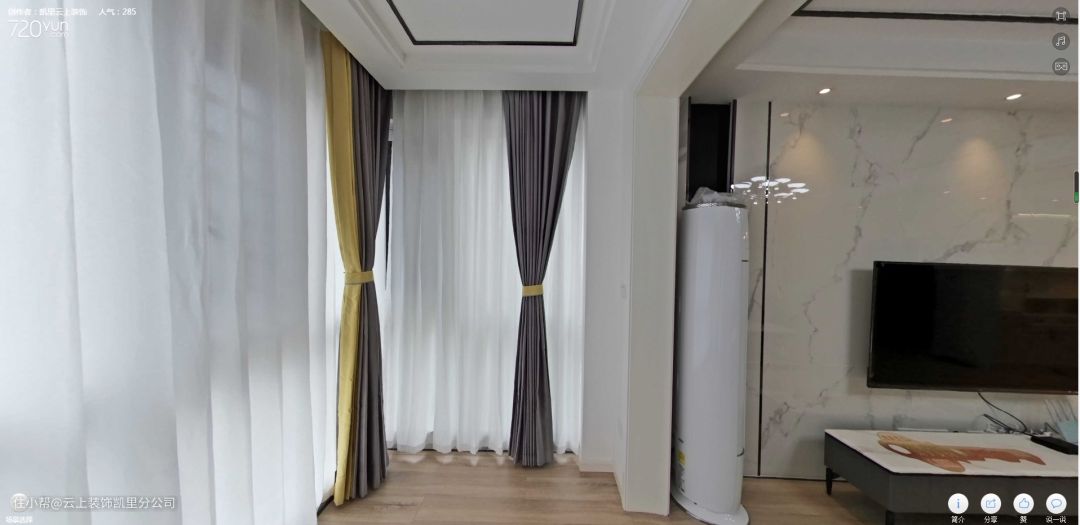 ▲客厅颜值最高的地方就是这个观景阳台了,没有做玻璃隔断也没打吊柜。阳台封掉后装上白纱帘和遮光窗帘,再放上一把休闲摇椅,平时在这里看书听音乐简直太舒心了!