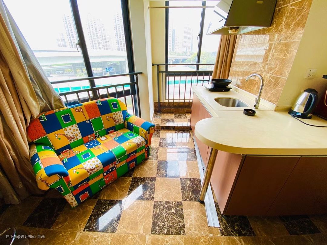 这边是很少做饭,平时也是度假才过来入住,所以把厨房做到阳台这边,也是利用空间,但是也不影响阳台的使用,楼层比较高,所以视野也是非常好。