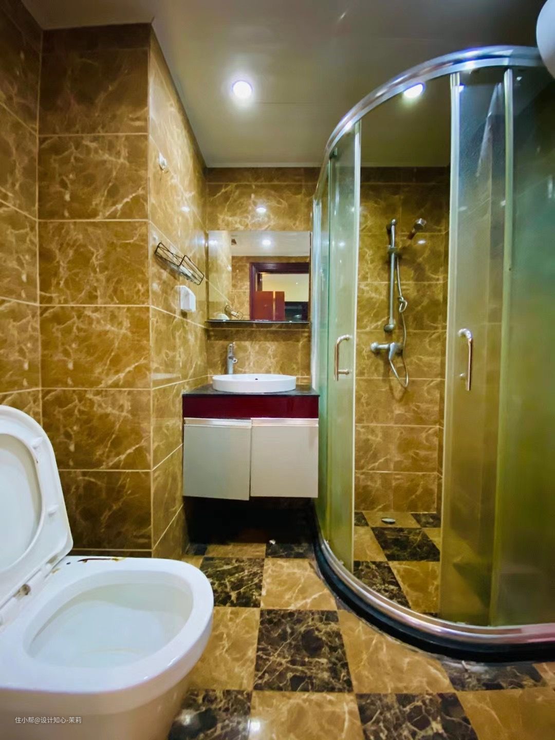 卫生间是用冷色调进来来装饰的,有做了干湿分离,利用色调的搭配凸显卫生间的时尚感。