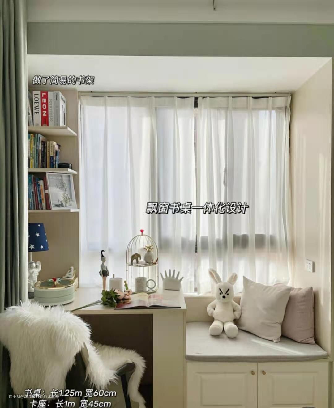 飘窗拆除以后做了一半飘窗一半书桌,空间合理利用,也不显拥挤。