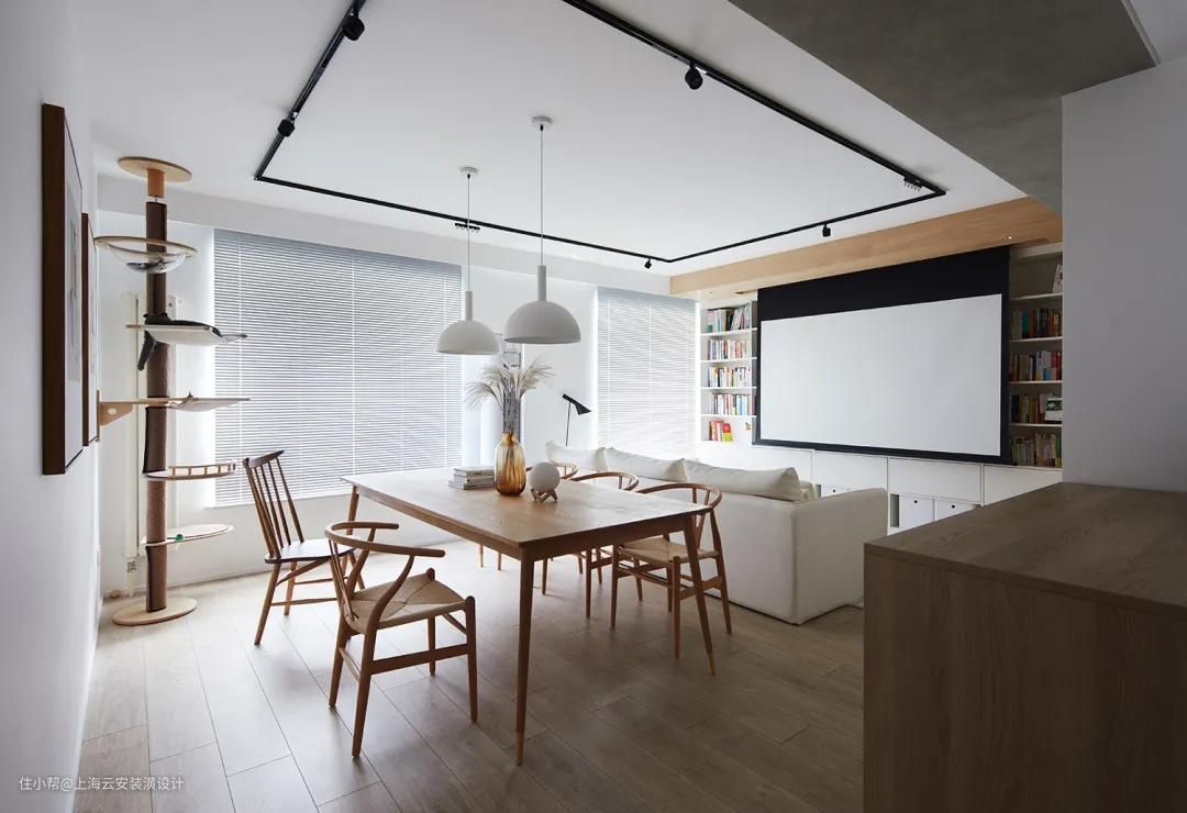 业主是一对坐标上海的年轻夫妻, 男主人喜欢看纸质书, 因为工作关系,经常出差; 女主人经常需要居家办公, 闲暇时喜欢窝在沙发里,或宅家看电影。 夫妻俩渴望有个安心的居所, 喜欢北欧和日式家居的温馨、轻松感。