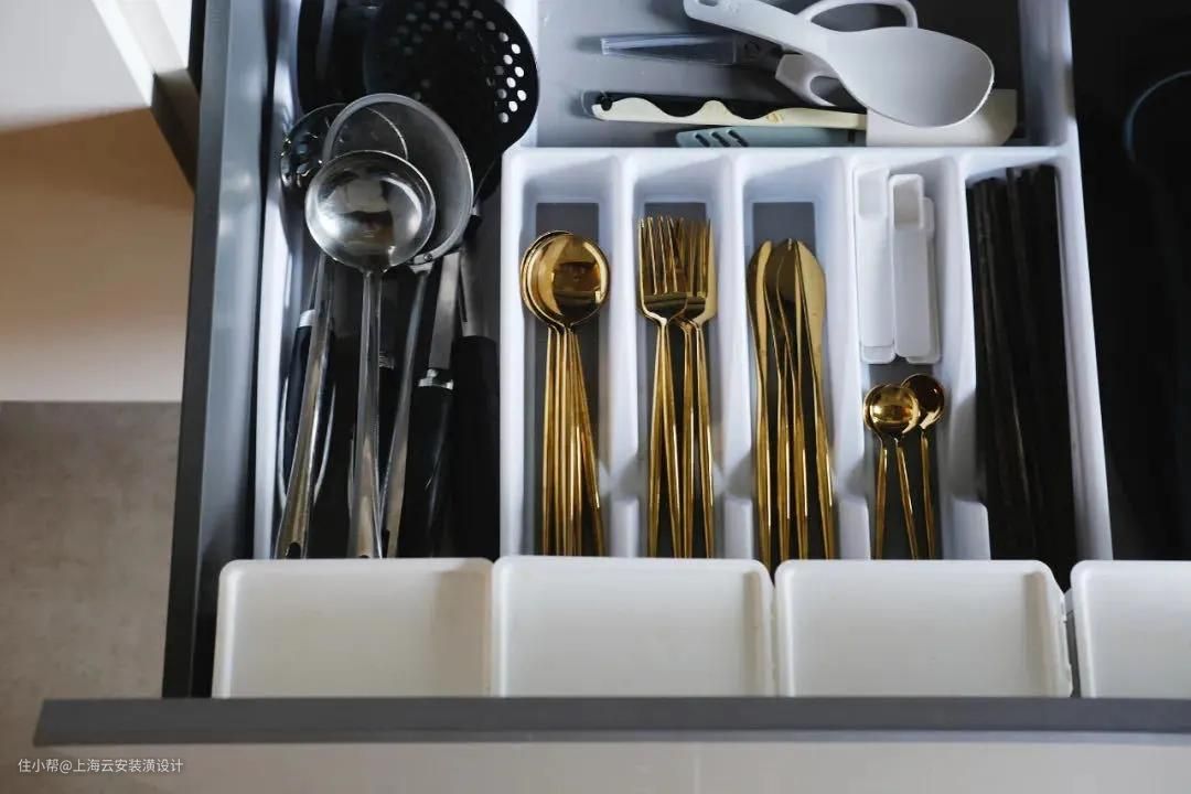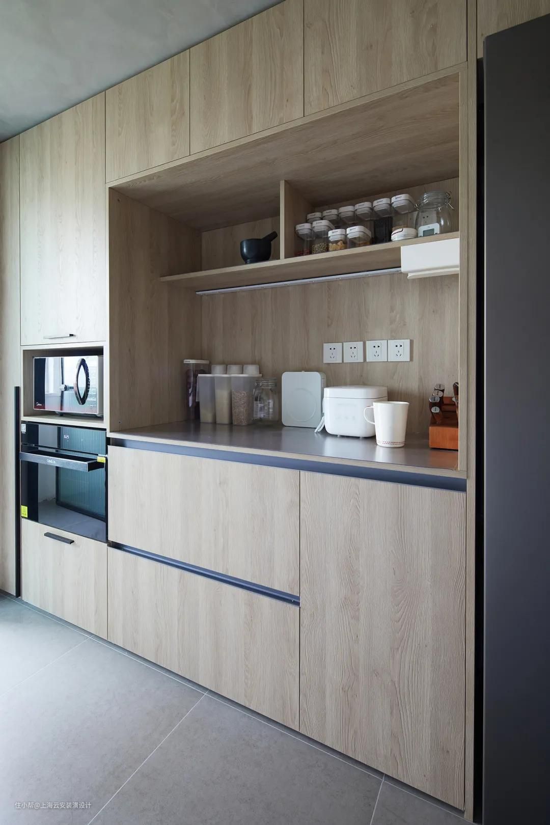 业主家里经常做饭、会客, 两个操作台的设计更适合他们。 平时这里放着常用小电器, 方便做简易的早餐或冲咖啡、泡茶。