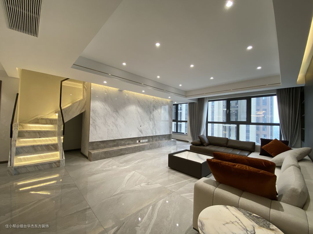 △本案属于大平层,原本优质的空间布局及使用面积,优化空间仅仅成为了基本需求之一,户型本身符合当下流行的宽面弱深特点,动与静的合理划分打破了空间的死板分割,使生活的每一个场景变得舒适。一层选择简约大气的轻奢风格,顶层选择文化气息浓厚的新中式,自由随性的徜徉于舒适的海洋。
