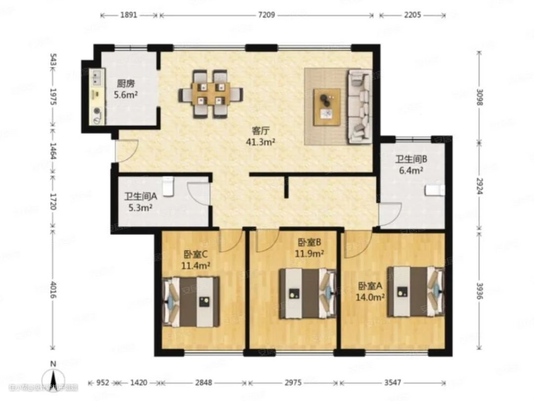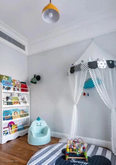 户型解析这是一个两室一厅的房子,屋主从事IT行业,和父母居住在一起,热爱读书,喜欢简约的美式风格。屋主的父母比较尊重儿子的喜好,整个装修过程中只有一个要求,整体的设计风格需要清爽整洁。玄关客厅餐厅厨房主卧儿童房阳台卫生间