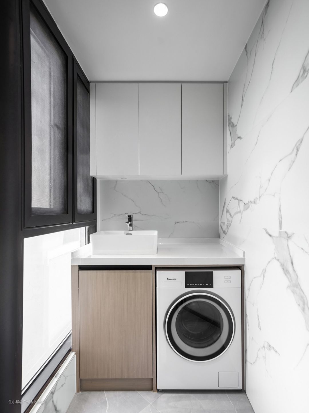 阳台使用洗烘一体机,预留足够的柜子,满足日常的清洁用品收纳。