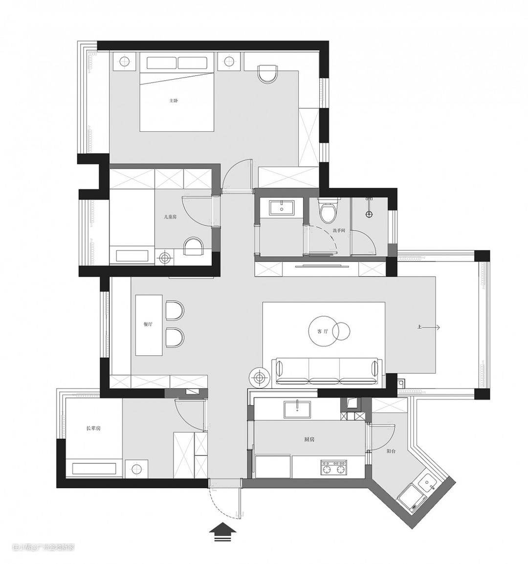 本案的屋主是一对年轻的夫妻,有一个可爱的儿子。屋主对收纳的需求非常大,同时希望达到简洁的视觉效果。工作之余,女业主喜欢待在家里陪伴小孩、邀请朋友来家里分享美食。 原户型为一套106㎡的三居室,每个空间的尺寸都非常紧凑。厨房靠墙的位置留了通道去生活阳台,所以能利用的空间非常有限,无法满足业主对厨房电器及收纳的功能需求。 通过与屋主的充分沟通以及现场考察之后,设计师使用半开放式处理,通过空间拆解,重构空间格局,由紧凑的空间,改为舒适的、通透的宽敞空间。