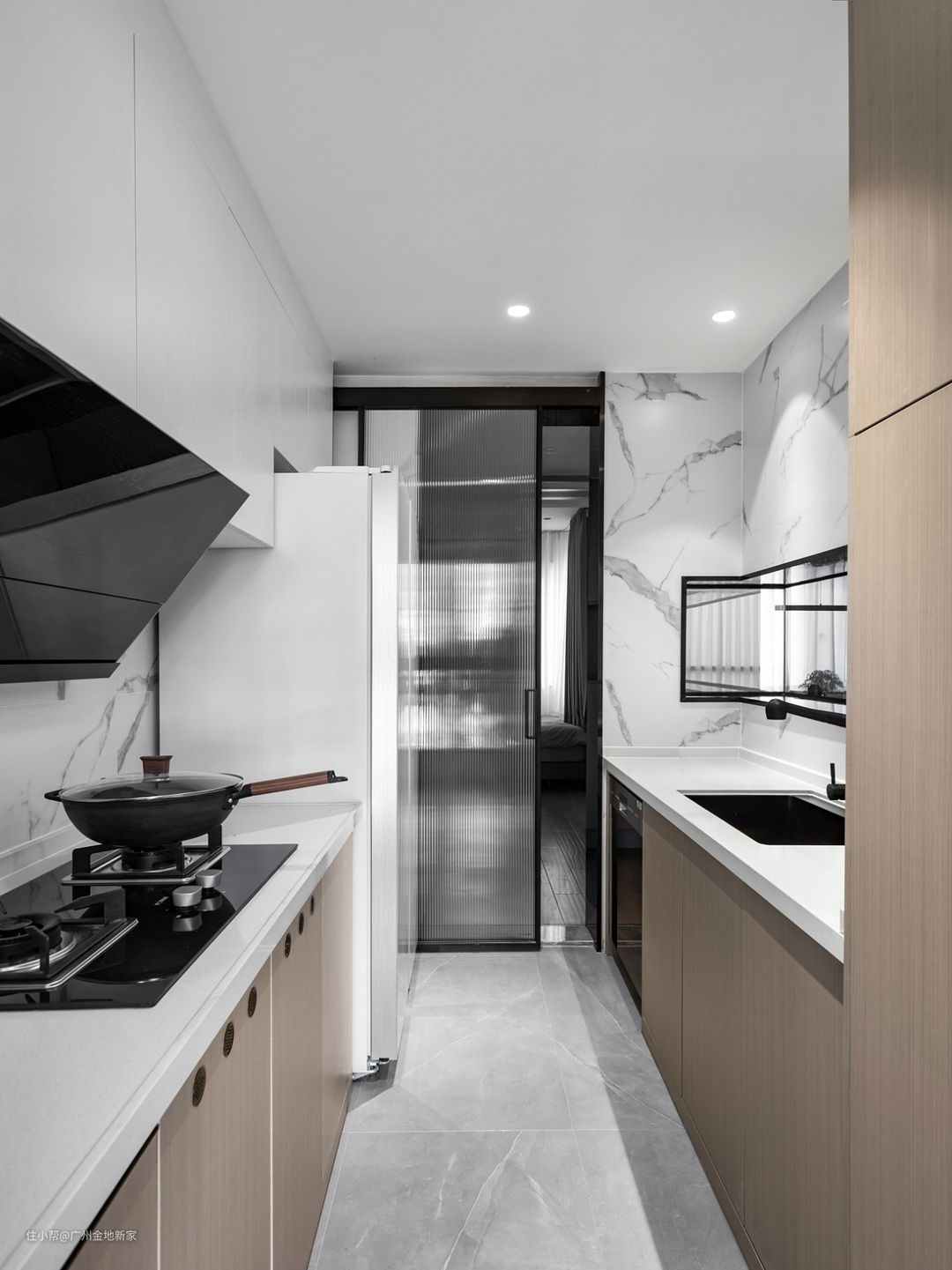 厨房使用了长虹玻璃推拉门,保证了玄关的采光,也多了一丝丝美感。
