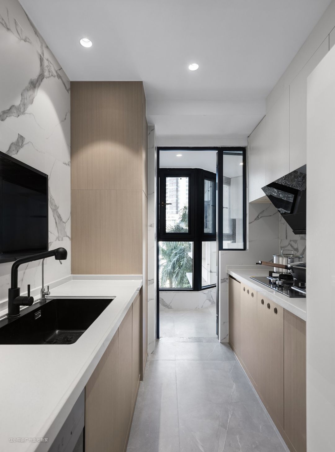 改造后的厨房,操作台面与收纳空间都明显增大,洗菜区域与烹饪区域互不干扰。