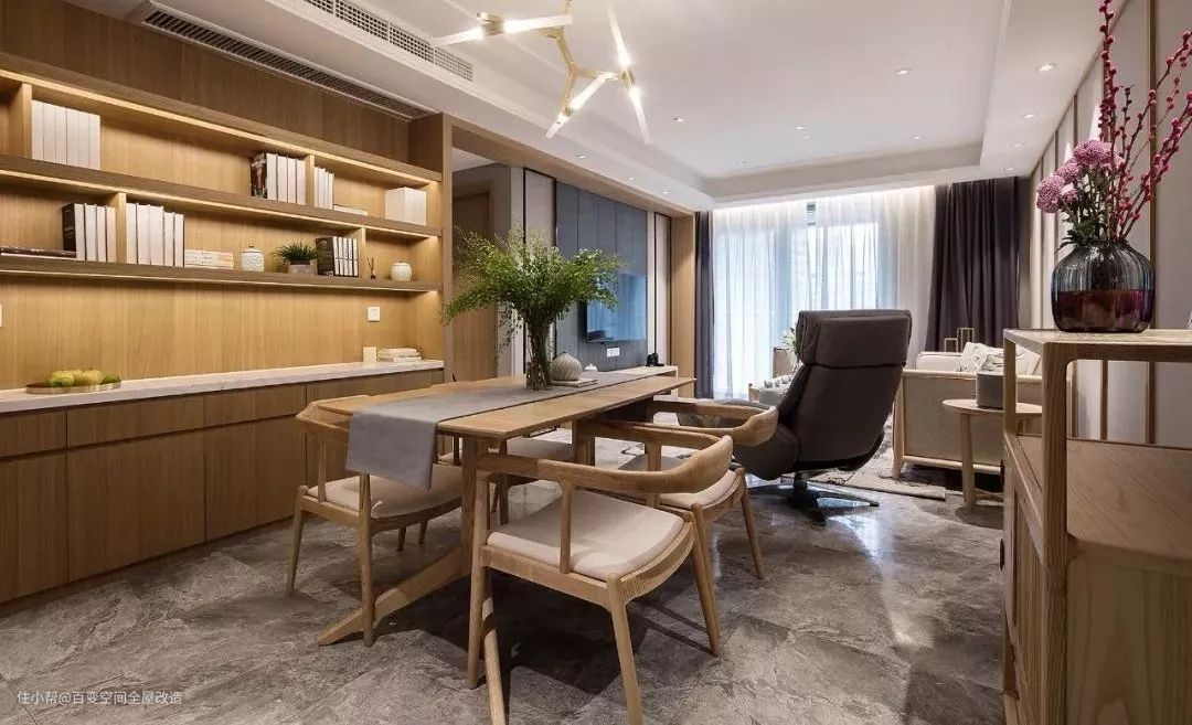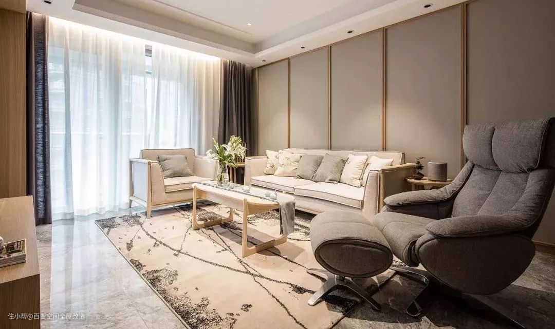 今天跟大家分享的是一套建筑面积106平米的新中式风三居室案例,设计师以暖灰色为底,搭配木质家具和木饰面板,来构造出这样一个温馨、舒适的家,房子不算特别大,但住下一家三口,却是刚刚好。