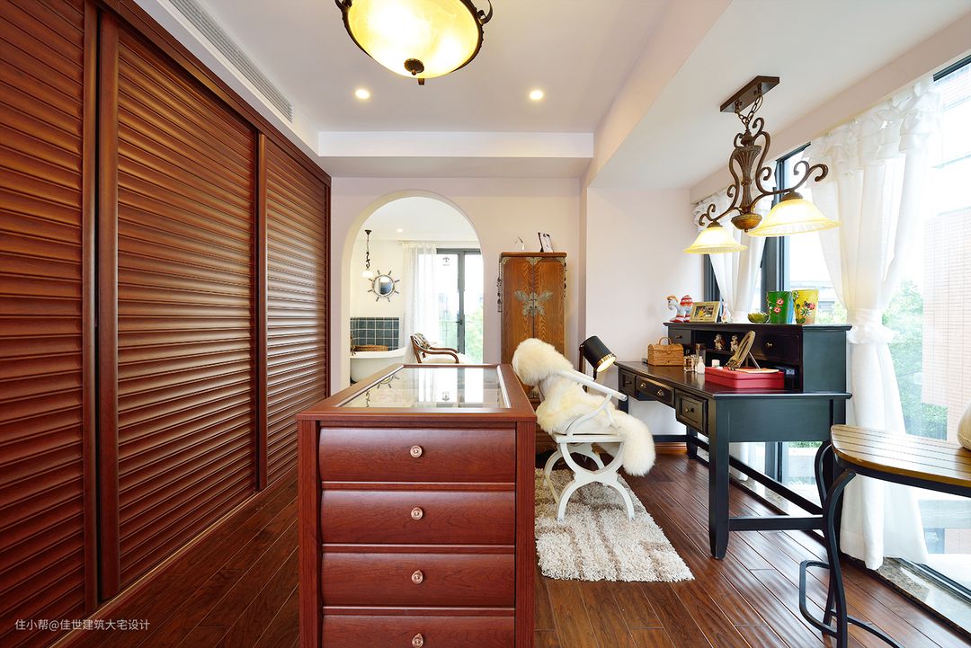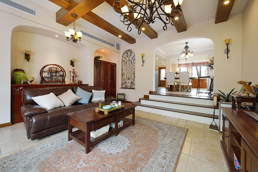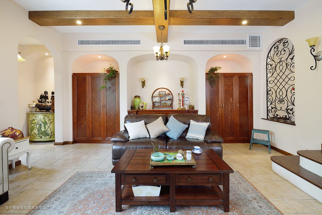 Q:本案作品灵感是如何产生的? A:女屋主特别喜欢地中海的氛围,对细节尤为看中,对生活的品质要求也很高,但又不喜奢华,因此结合屋主家人的生活习性与爱好,才有了这套温暖的家。 Q:为了满足客户的个性化需求,你在设计过程中做了哪些事情? A:地中海风格中,拱形、铁艺、布艺等这些元素的运用,在每一个空间中都得到了展现,衣帽间里梳妆台一角是女屋主非常喜欢的地方,负一层的休息阅读区则是受到了屋主全家的喜好,将生活习性融合到设计中,就是一套非常舒适、宜人的居所。