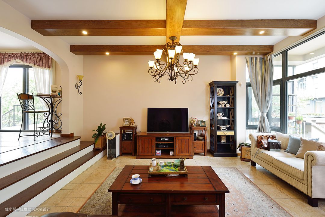 这种丰盈,沉静的木色,就是安心的感觉;光线好的室内空间,浅色墙面对光影的表现力则会更好,在一个洒满日光的客厅中,更能体会阳光带来的力量。 上下都用到了木色,电视背景墙的简洁跟“留白”是一样的道理。