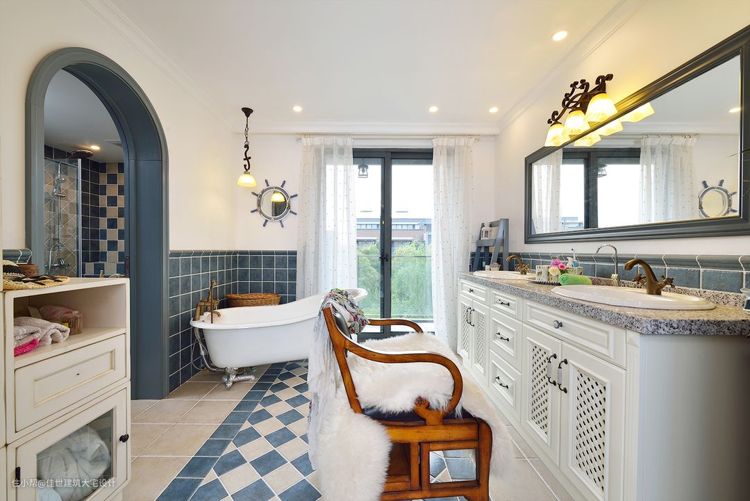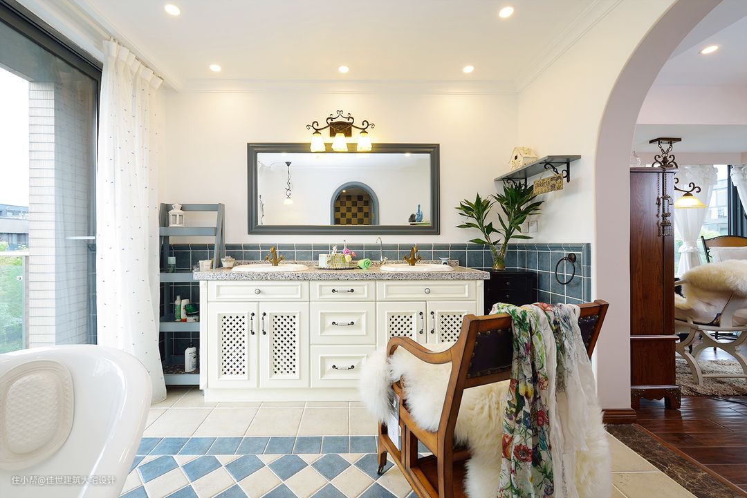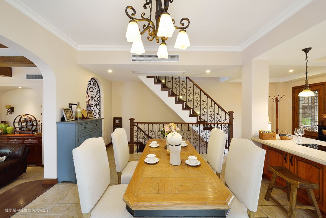 Q:本案作品灵感是如何产生的? A:女屋主特别喜欢地中海的氛围,对细节尤为看中,对生活的品质要求也很高,但又不喜奢华,因此结合屋主家人的生活习性与爱好,才有了这套温暖的家。 Q:为了满足客户的个性化需求,你在设计过程中做了哪些事情? A:地中海风格中,拱形、铁艺、布艺等这些元素的运用,在每一个空间中都得到了展现,衣帽间里梳妆台一角是女屋主非常喜欢的地方,负一层的休息阅读区则是受到了屋主全家的喜好,将生活习性融合到设计中,就是一套非常舒适、宜人的居所。