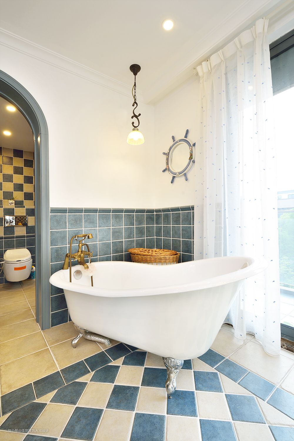 有围边的拼花瓷砖,蓝白色给人一种咸咸的海洋味道,经年都会散发着柔和的光泽度,说不出的好看。