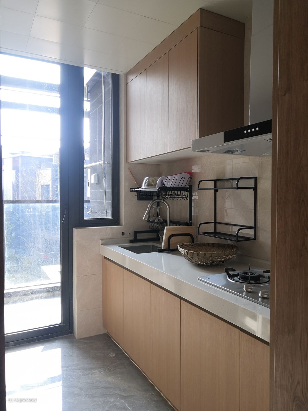 楼梯旁边的门后就是厨房空间,考虑橱柜可以结合到我们风格,厨房并未做大改动,只是把客厅公区地砖通铺过去,其次改变了厨房门,其他保持房屋原有精装设计.