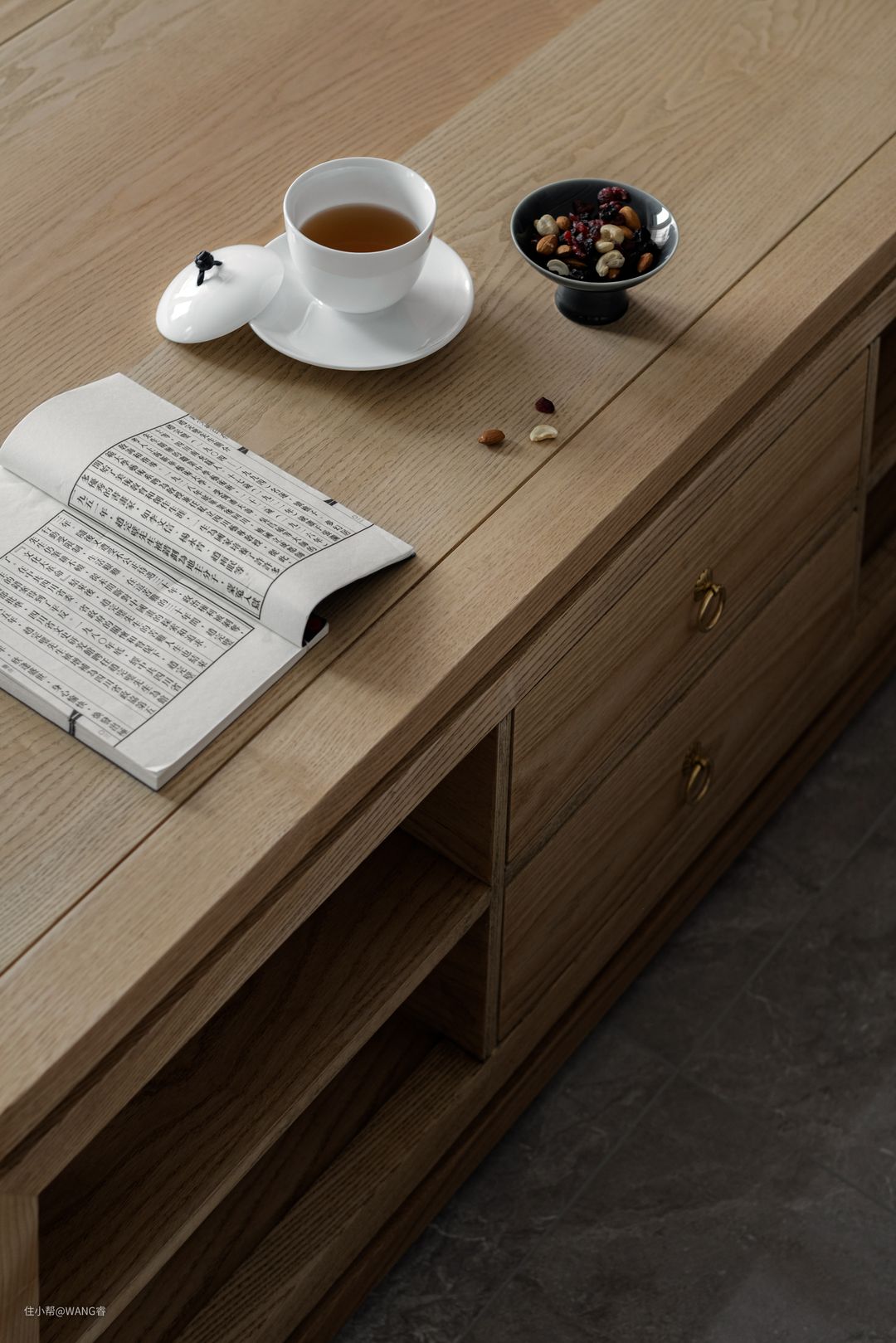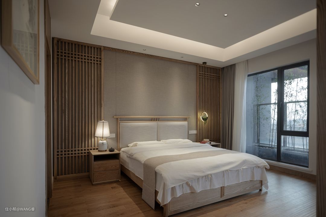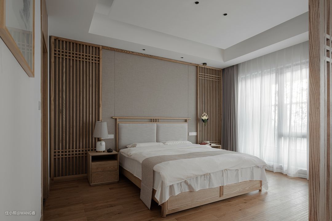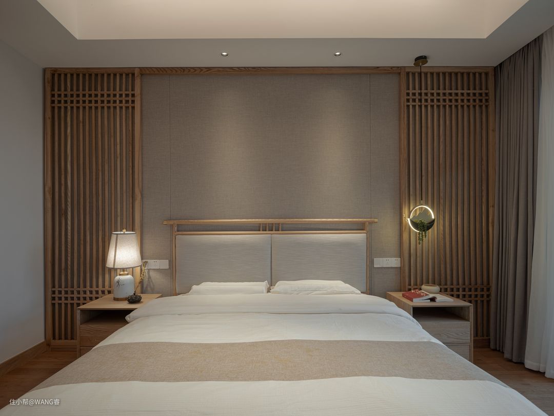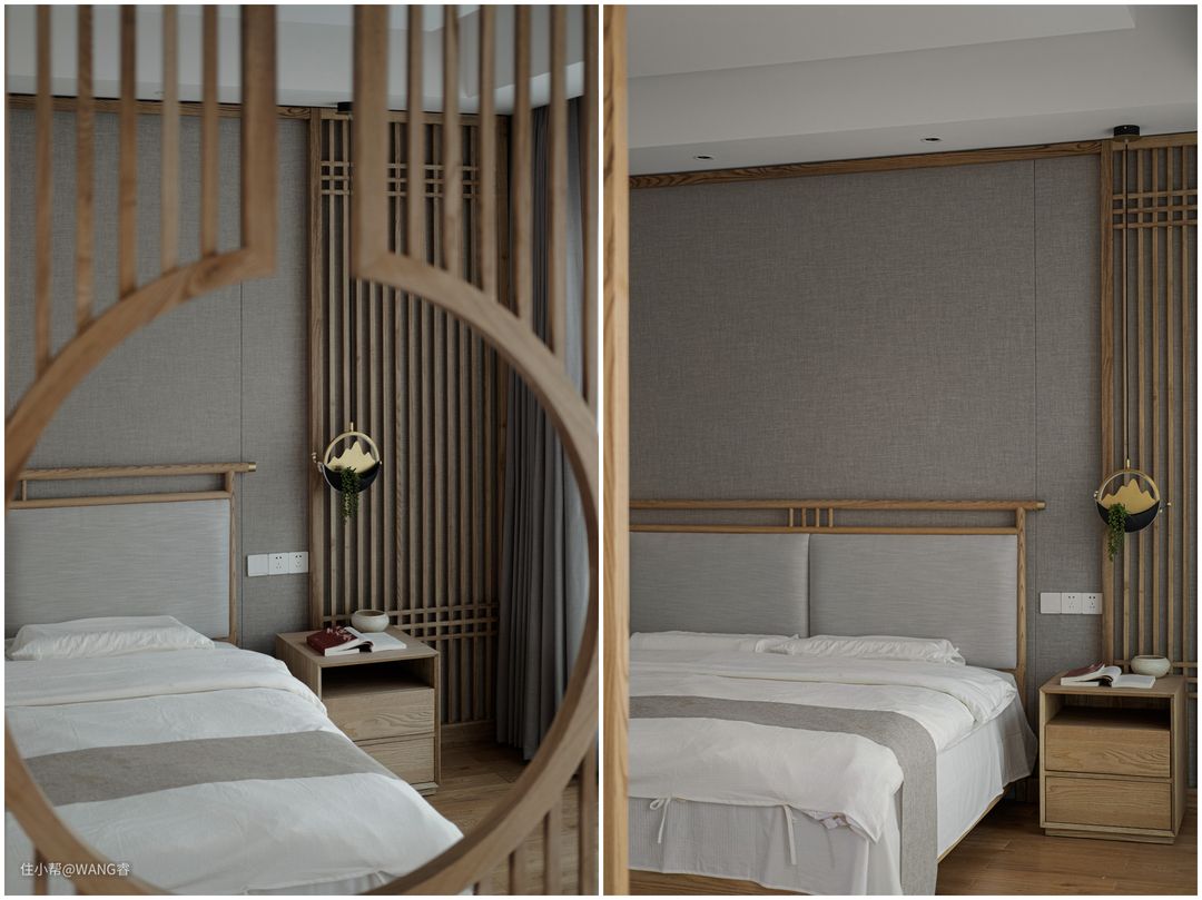 茶室左边隐形门后是卧室,延续整体原木的搭配,以休憩为主,无过多装饰.